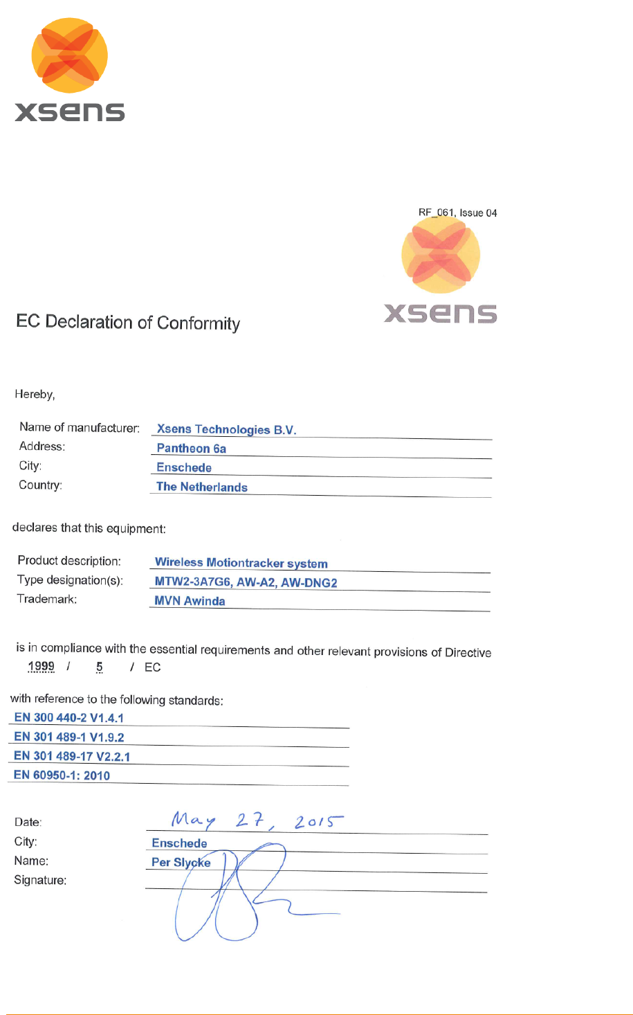 Xsens, MVN, MotionGrid, MTi, MTi-G, MTx, MTw, Awinda and KiC are registered trademarks or