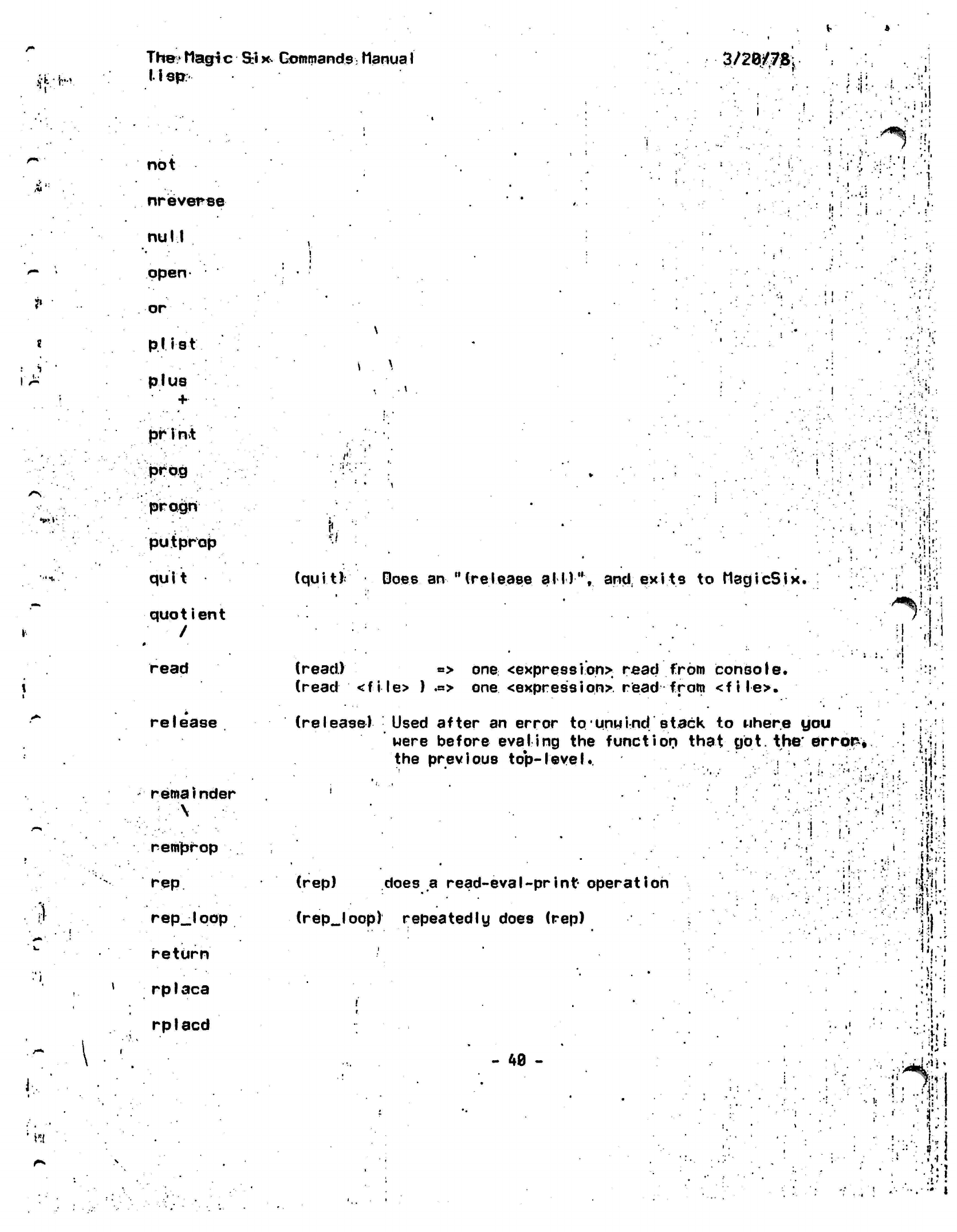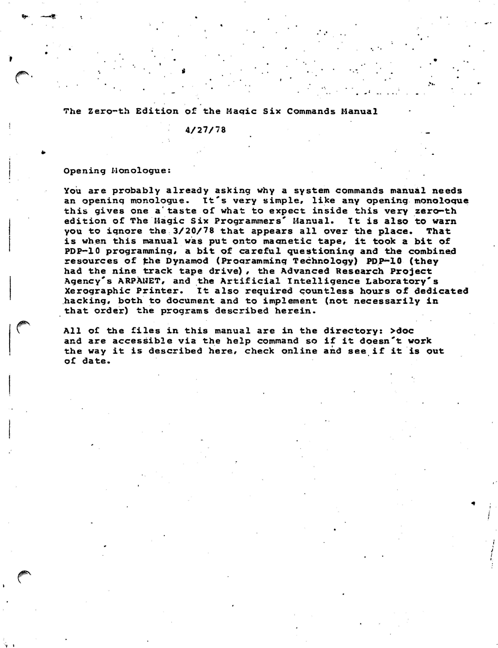 The Zero-th Edition of the Maqic Six Commands Manual