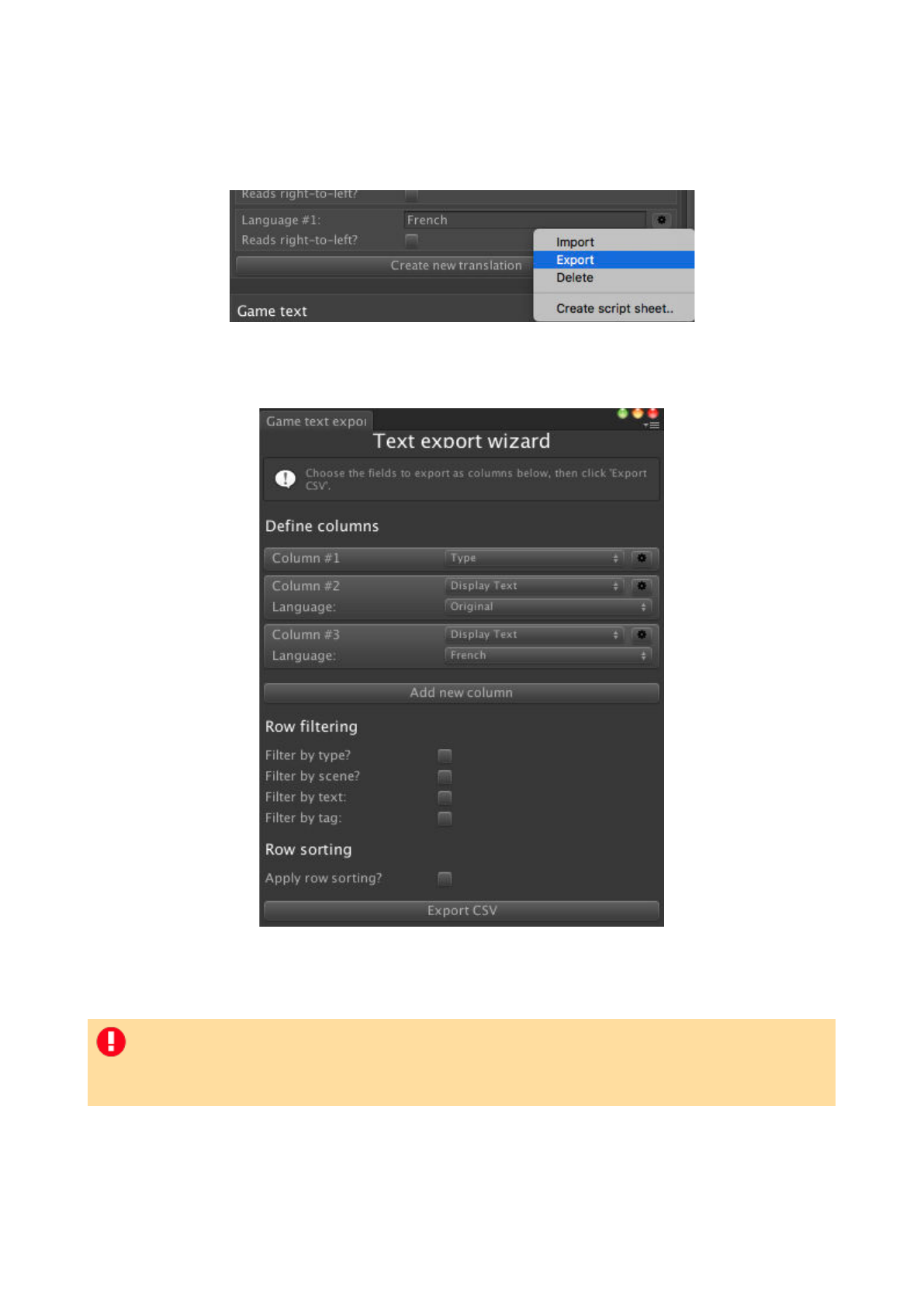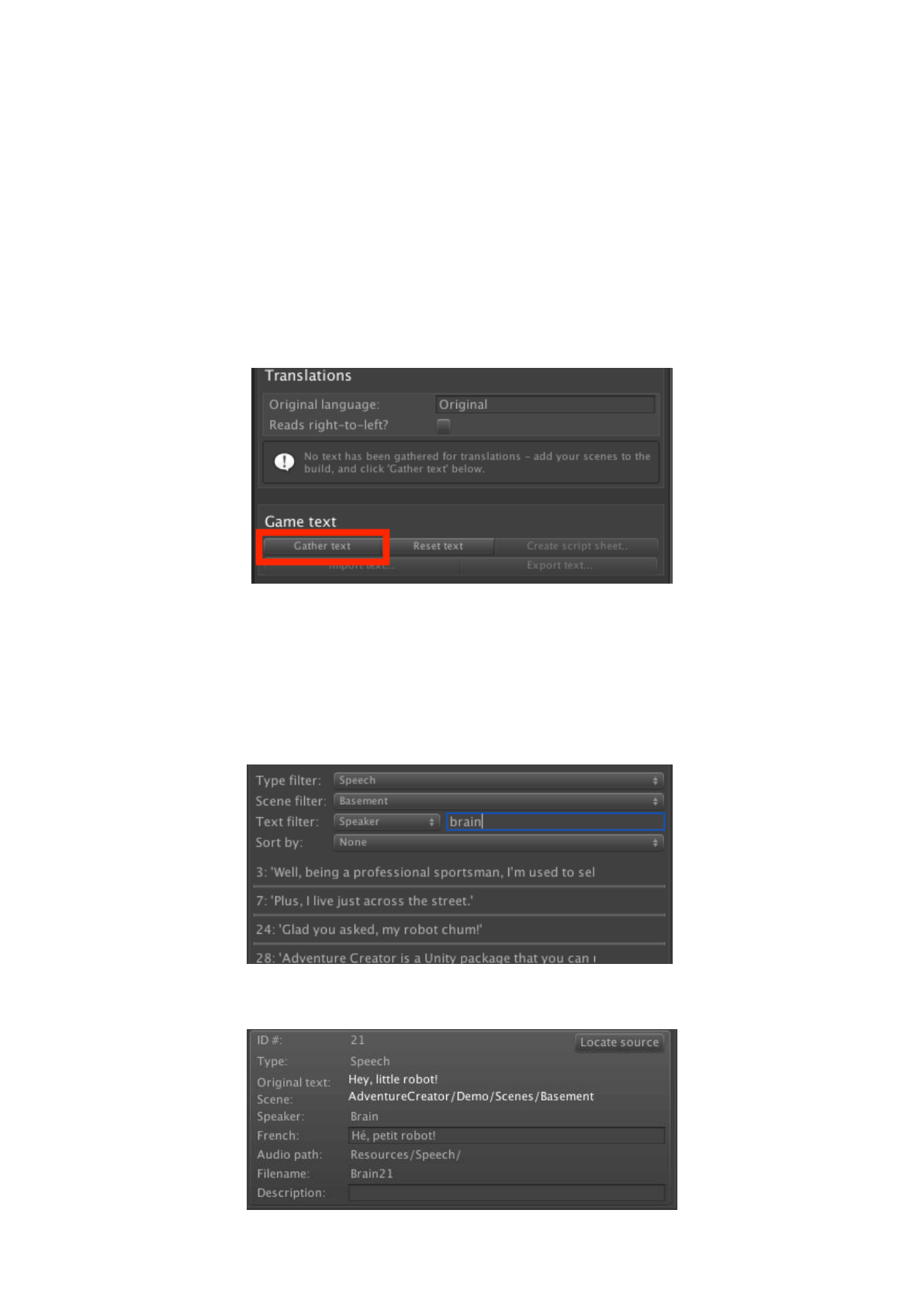 cog in their top-right corner. These comments can be printed in the Unity Console by