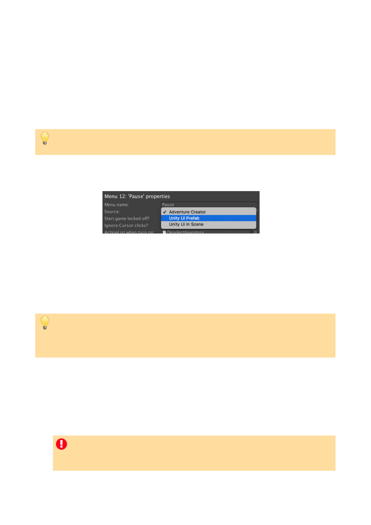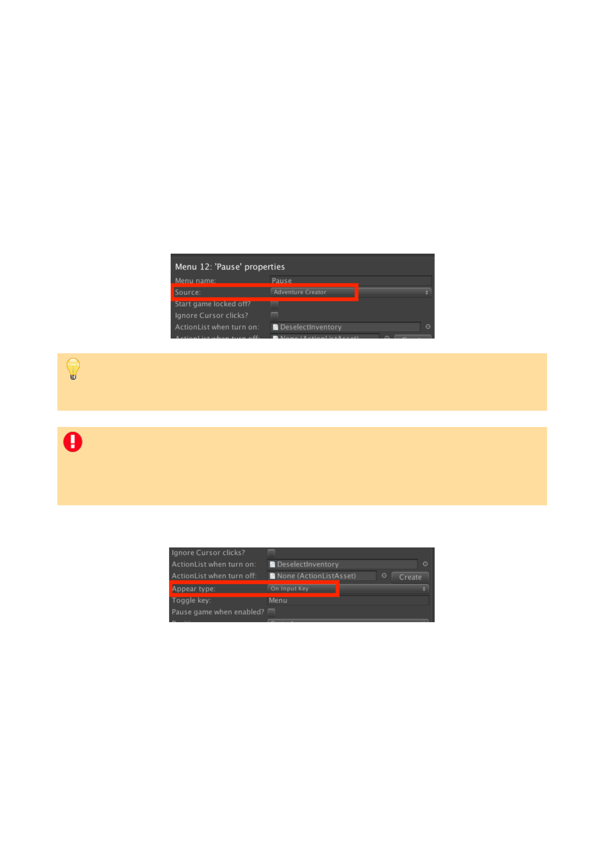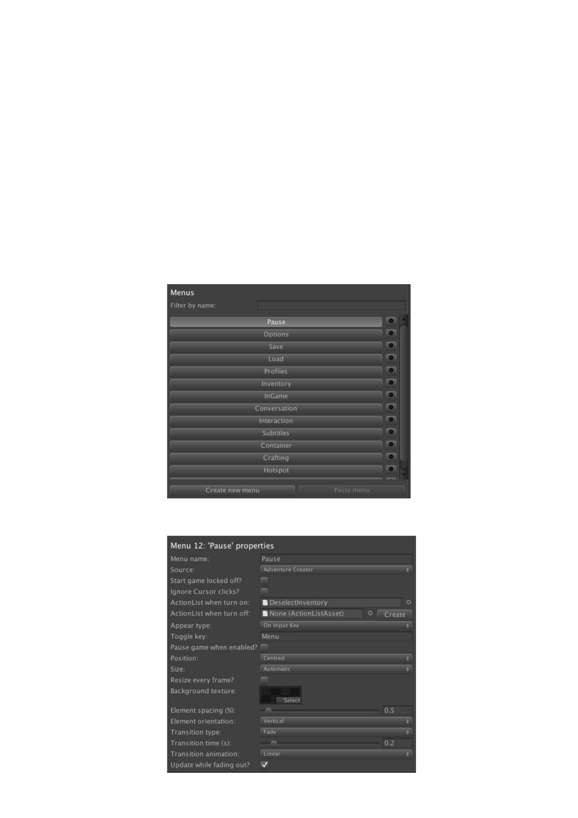 4. Menus that have their Source property set to Adventure Creator are drawn with