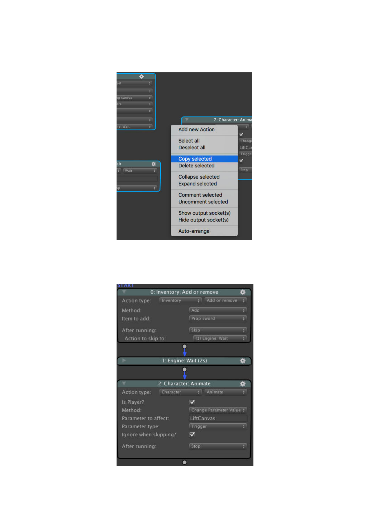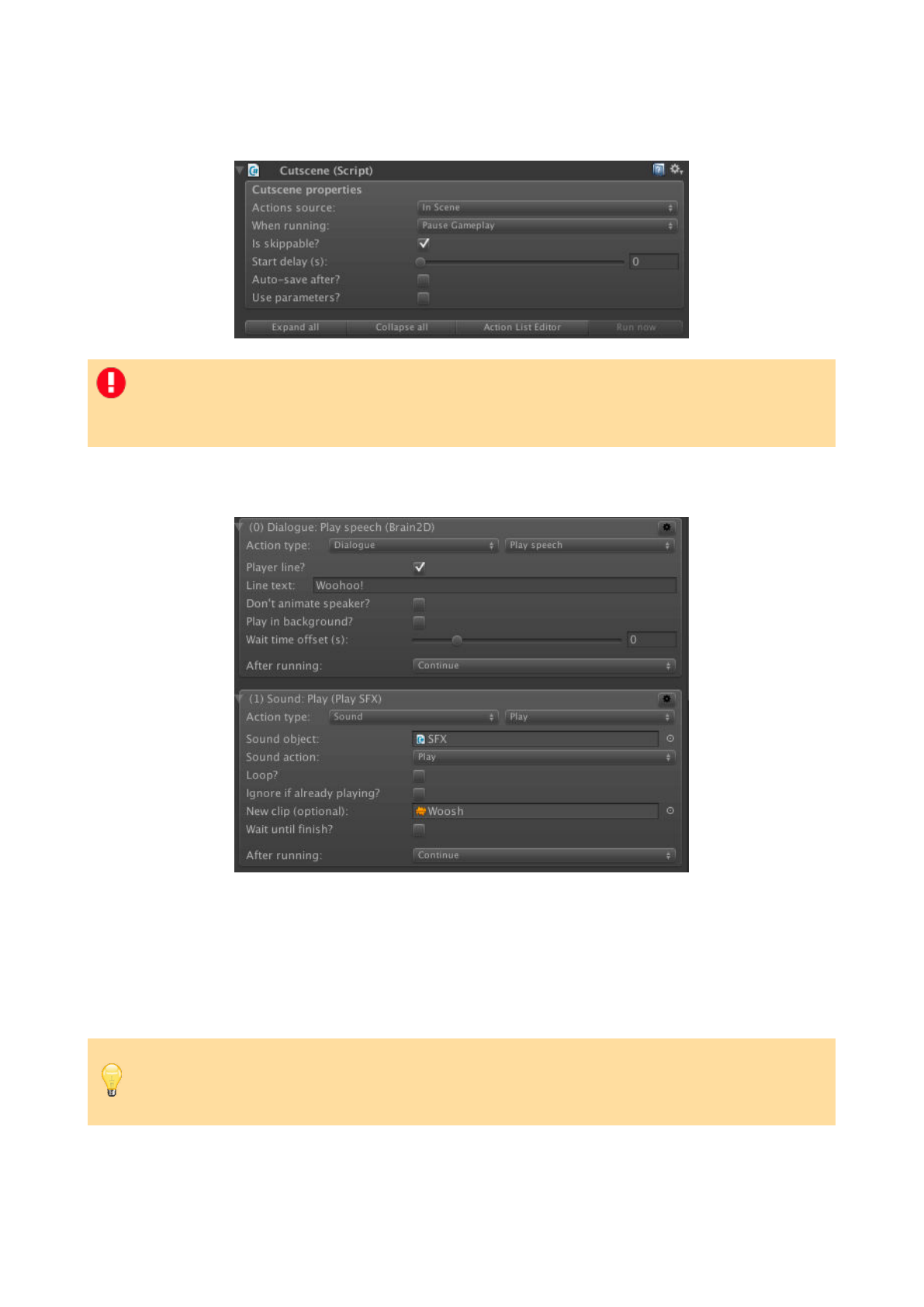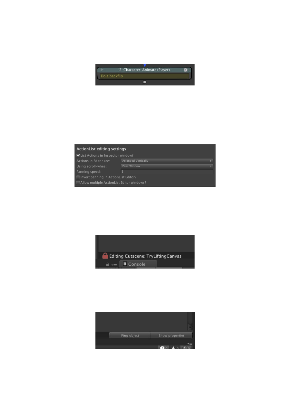 are run – allowing the user to check the state of a scene at that point in time. Actions can