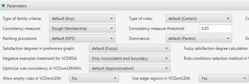uses java Rough Set library (jRS). Application supports Windows, Linux and