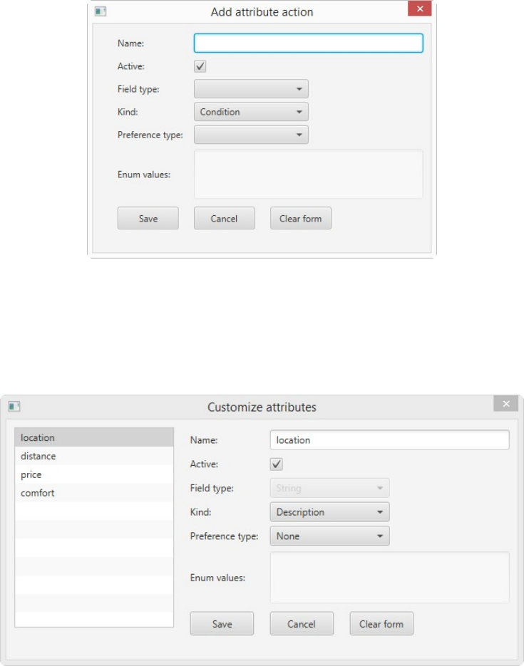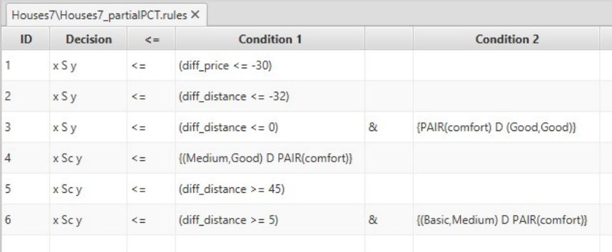 In this window all saved rules are displayed. Each rule consists of a conjunc-