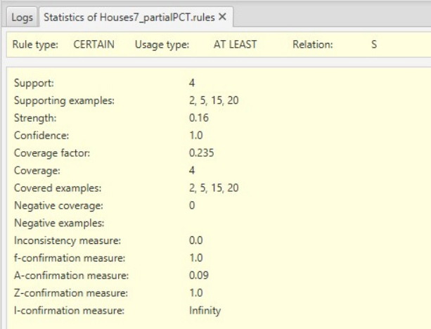 rule. Rules can be of certain or possible type. Indexes provided in statistics