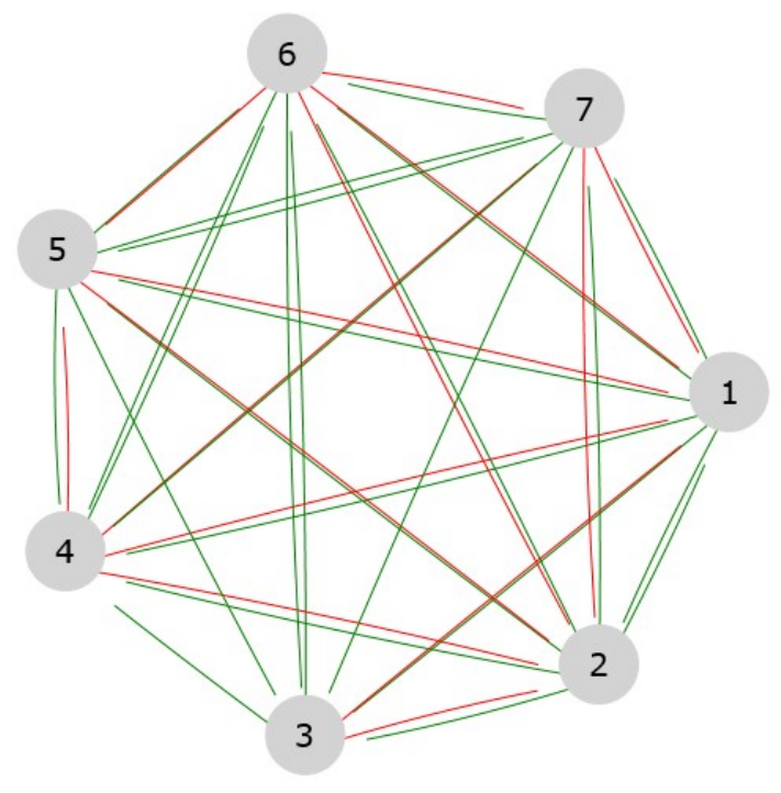 Relation type is marked with line color. Green is for outranking relation (S)