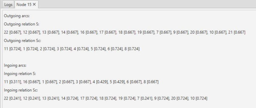 vertex, it will be selected and summary for arcs will be displayed in tab below.