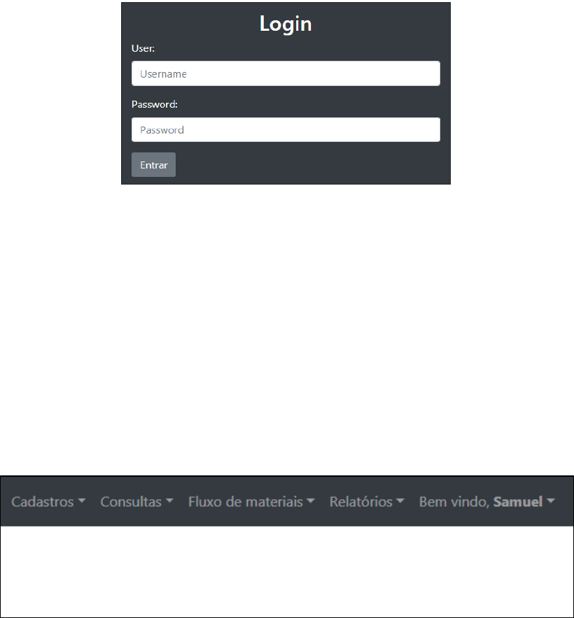 Nesta tela, o usuário deverá informar suas informações de login (usuário e senha).