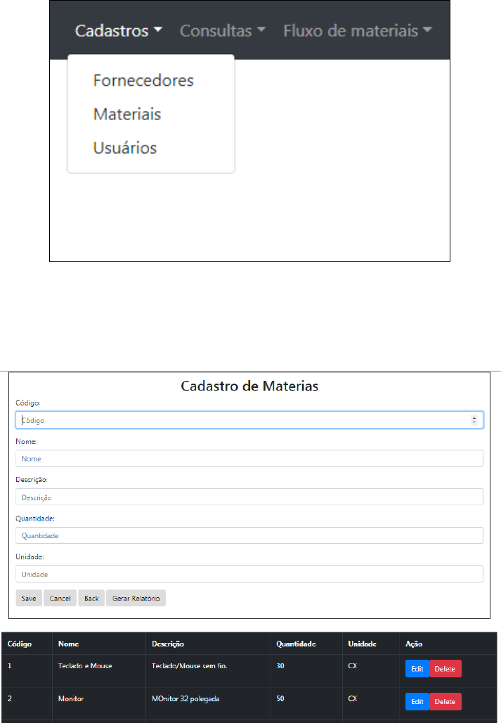 material cadastrado irá aparecer na tabela de materiais que se encontra abaixo dos campos