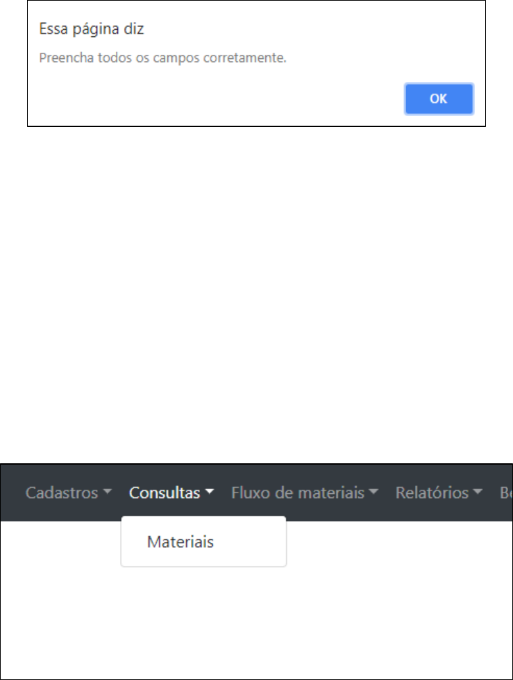 A seguinte tela será apresentada: Exemplo para consulta de materiais.