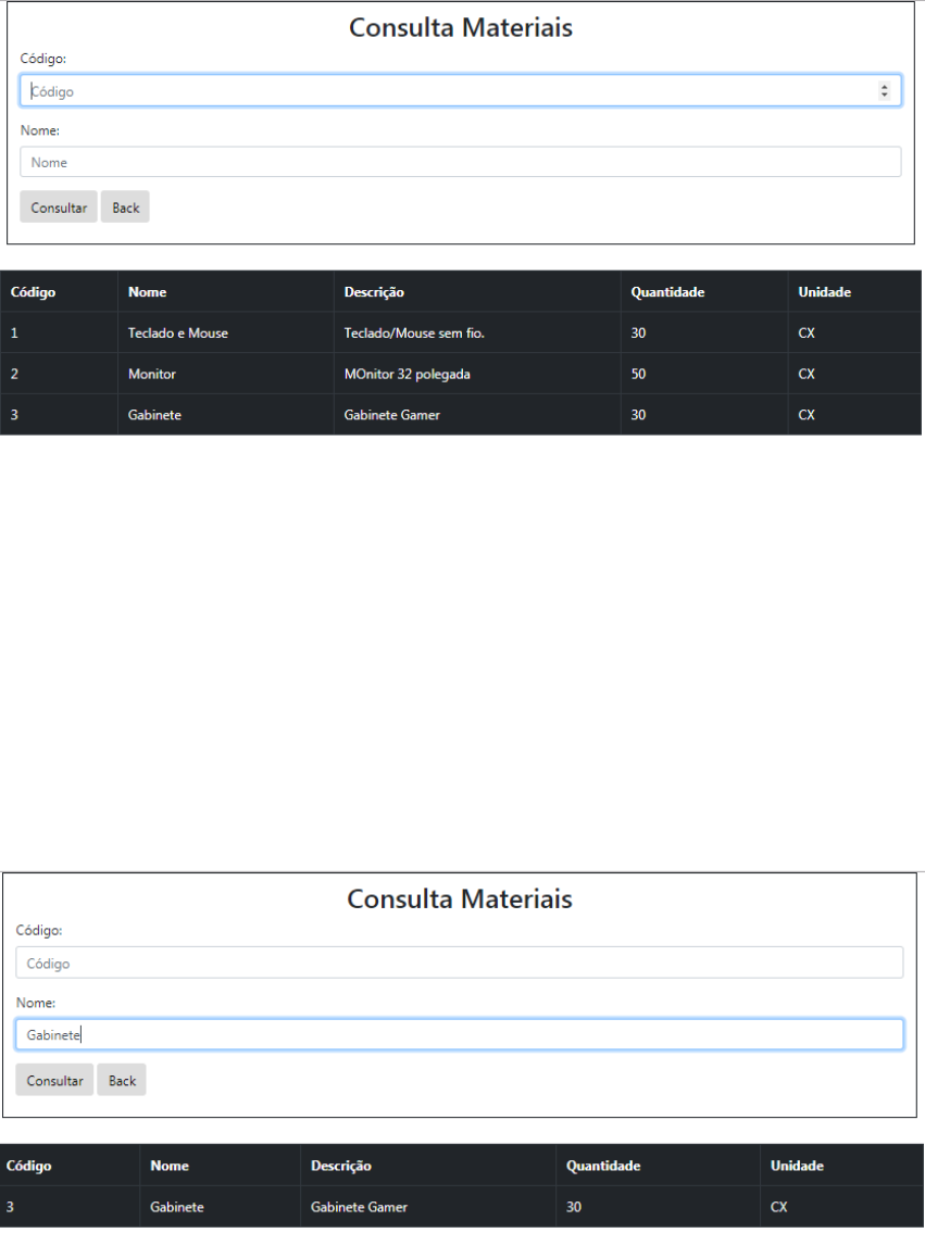 com os resultados encontrados. Exemplo de consulta pelo nome para o material