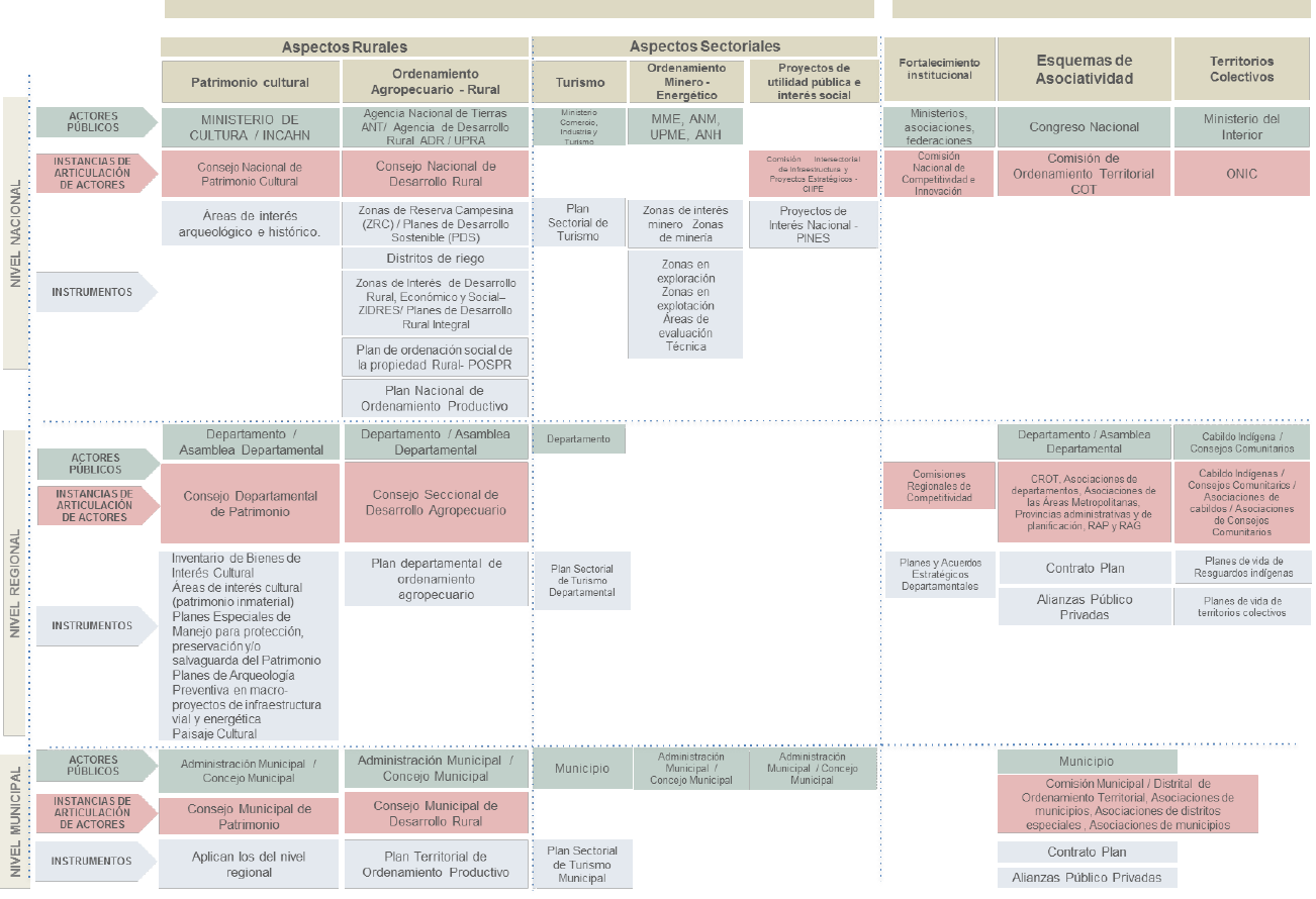 conceptuales del ordenamiento territorial colombiano; usos del territorio y formas