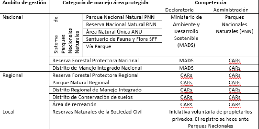 Parques Nacionales (2013). Áreas protegidas en lineamientos departamentales de