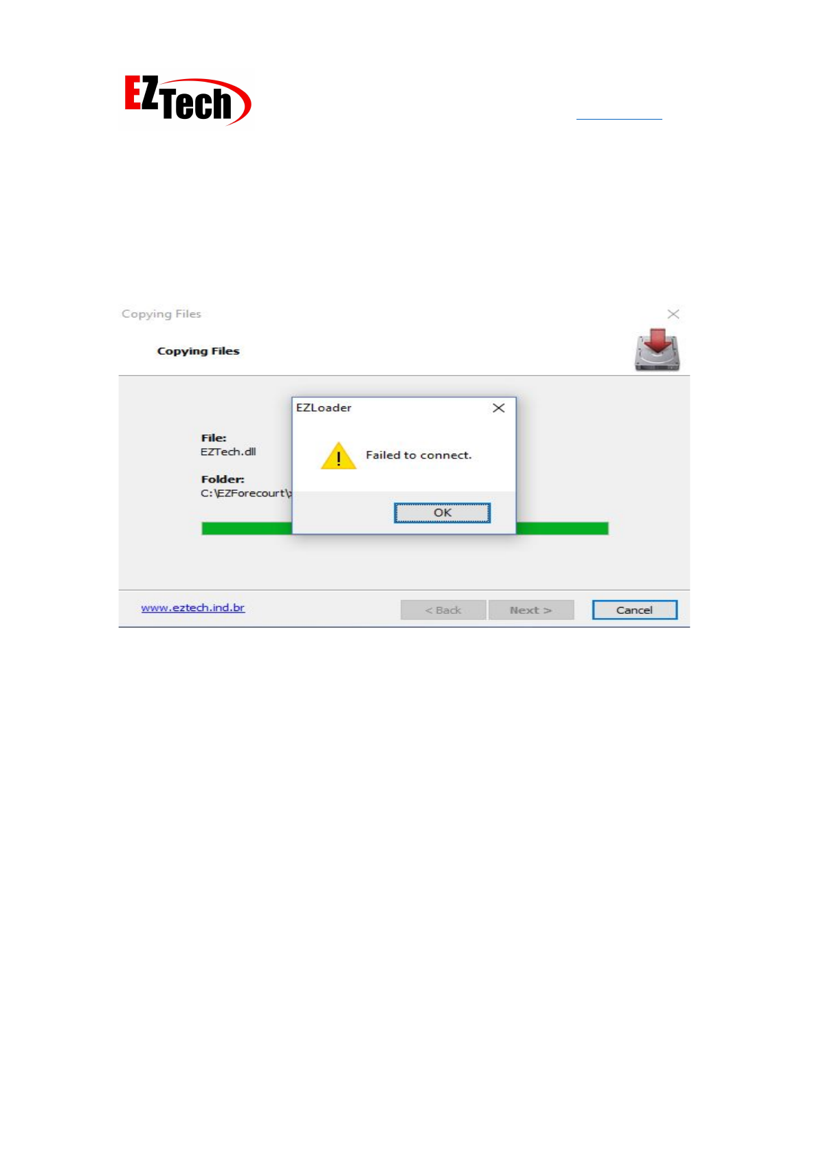 3: Uma mensagem "Falha ao conectar" aparecerá no final da instalação por não ter