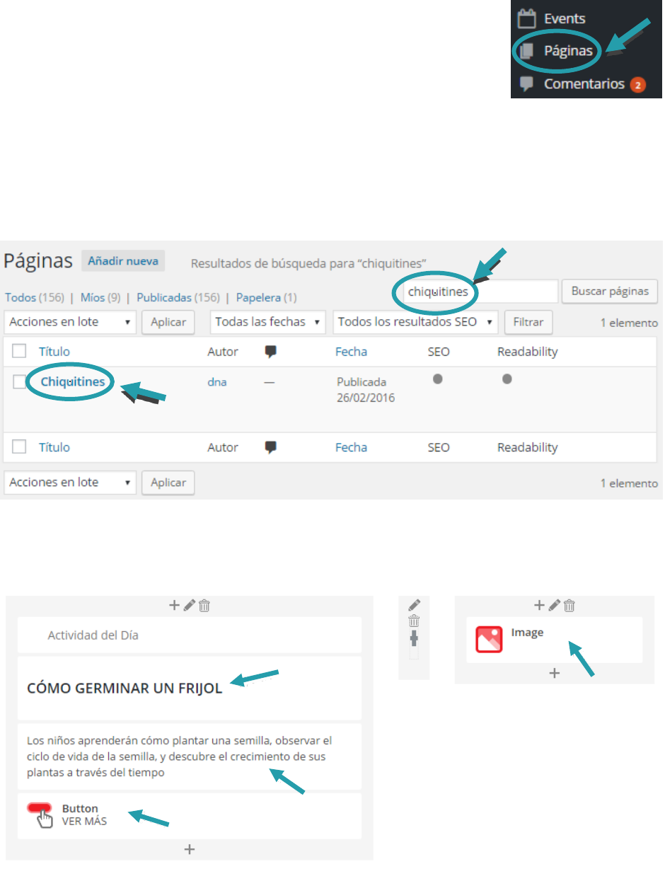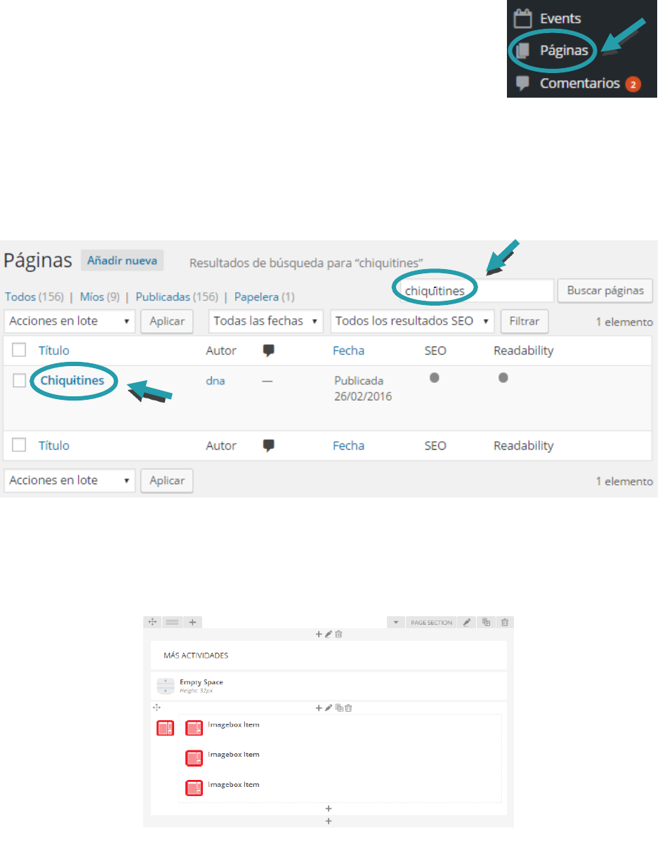 Chiquitines, para ello hay que navegar al apartado de Páginas a