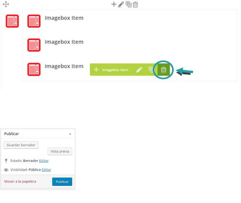 Se posiciona el cursor arriba del elemento Imagebox Item que se desea remover y se