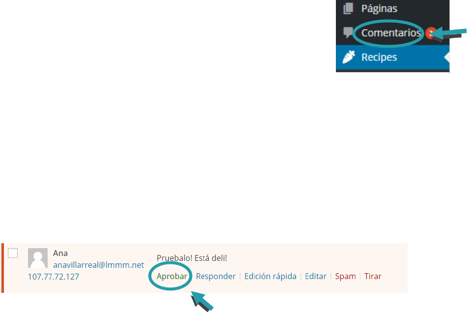 a posicionar el cursor sobre el comentario y a dar clic en el texto Aprobar. Ahora el