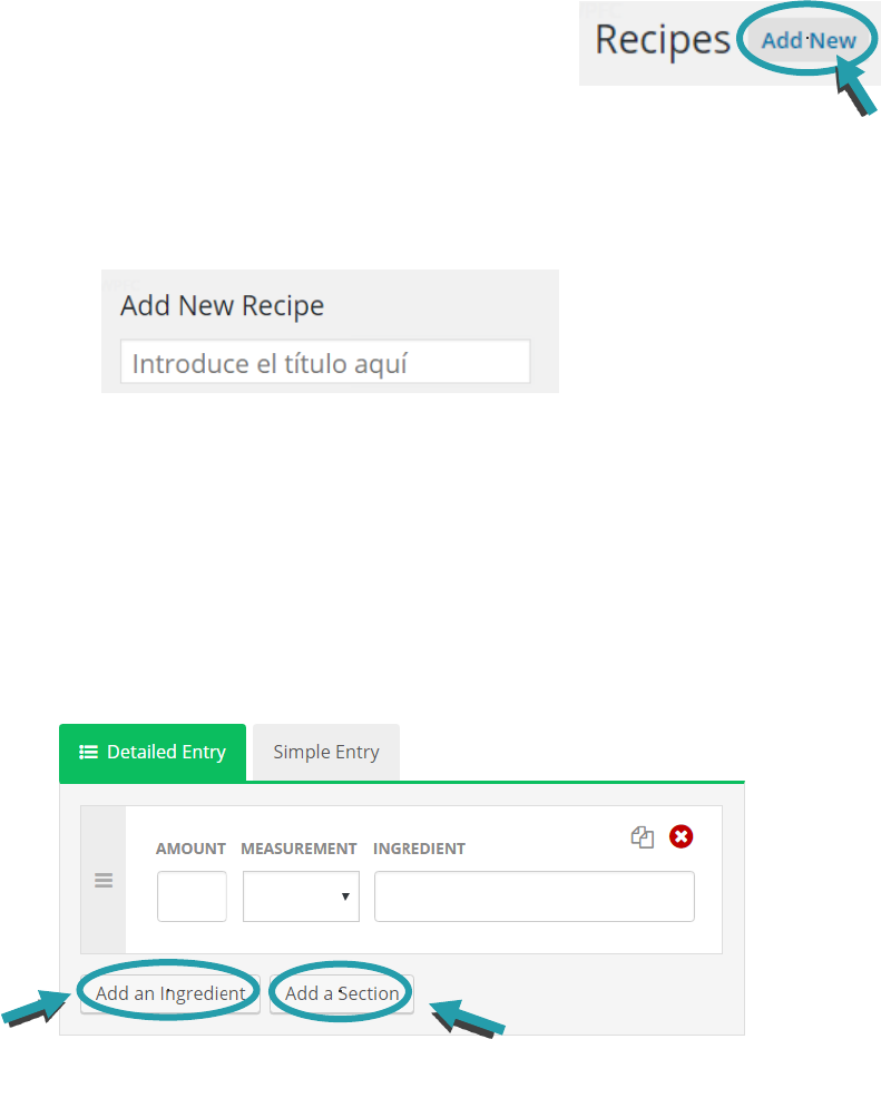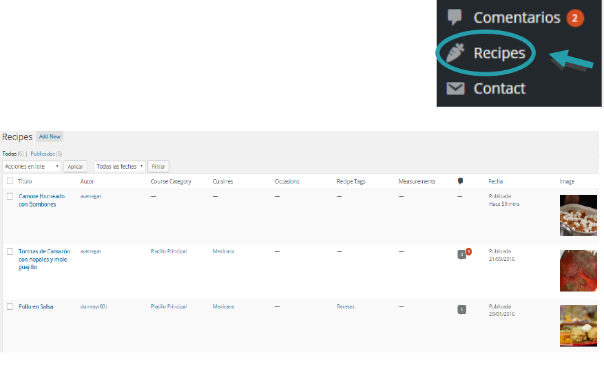 La página permite la creación de recetas, que podrán contener instrucciones,