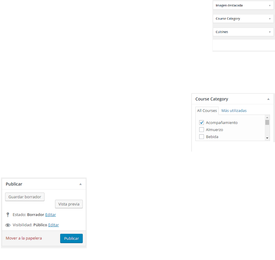 ingredientes, video demostrativo, imagen representativa, entre otros y podrán ser