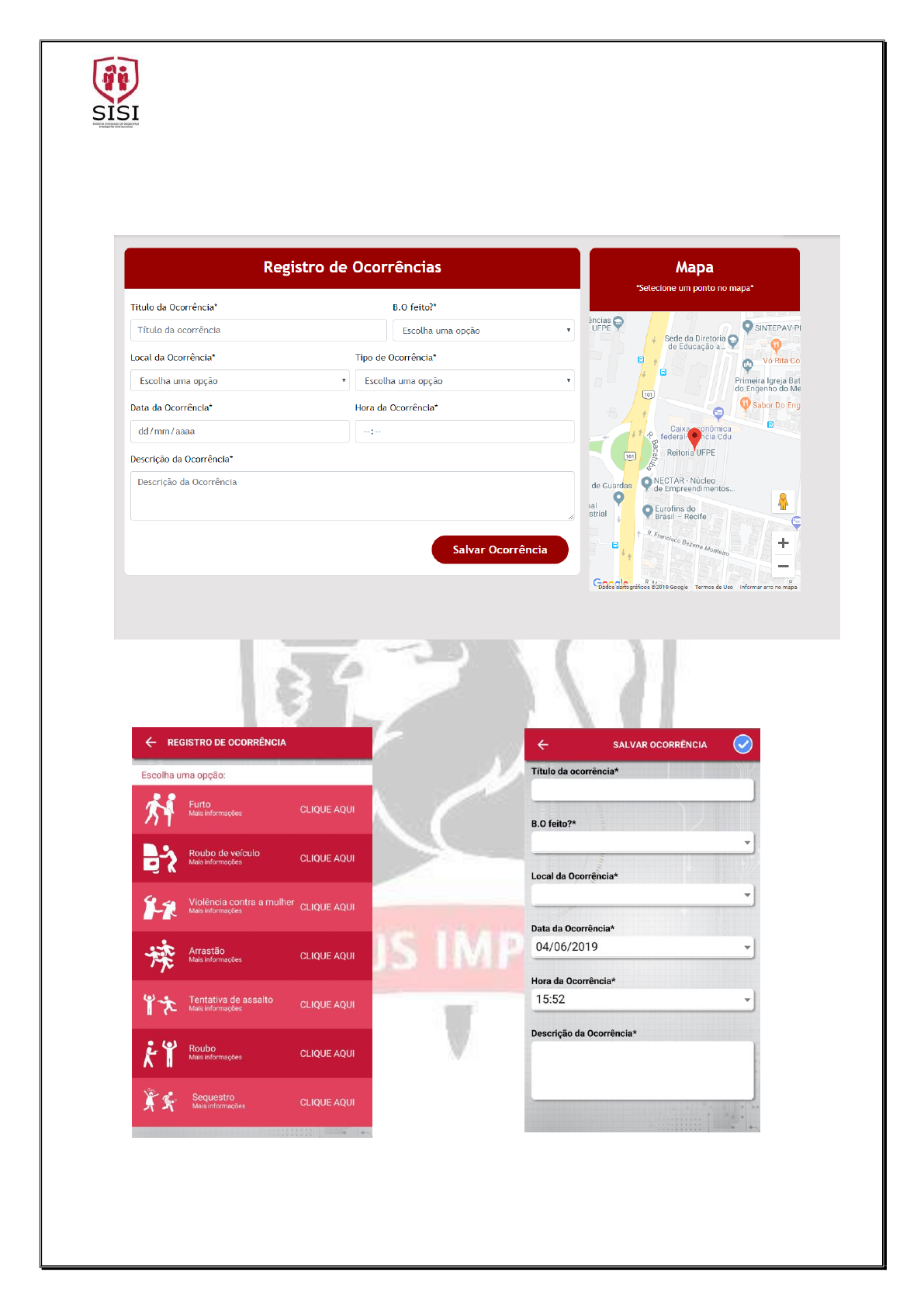 ocorrência e em seguida escolher qual tipo de ocorrência deseja registrar