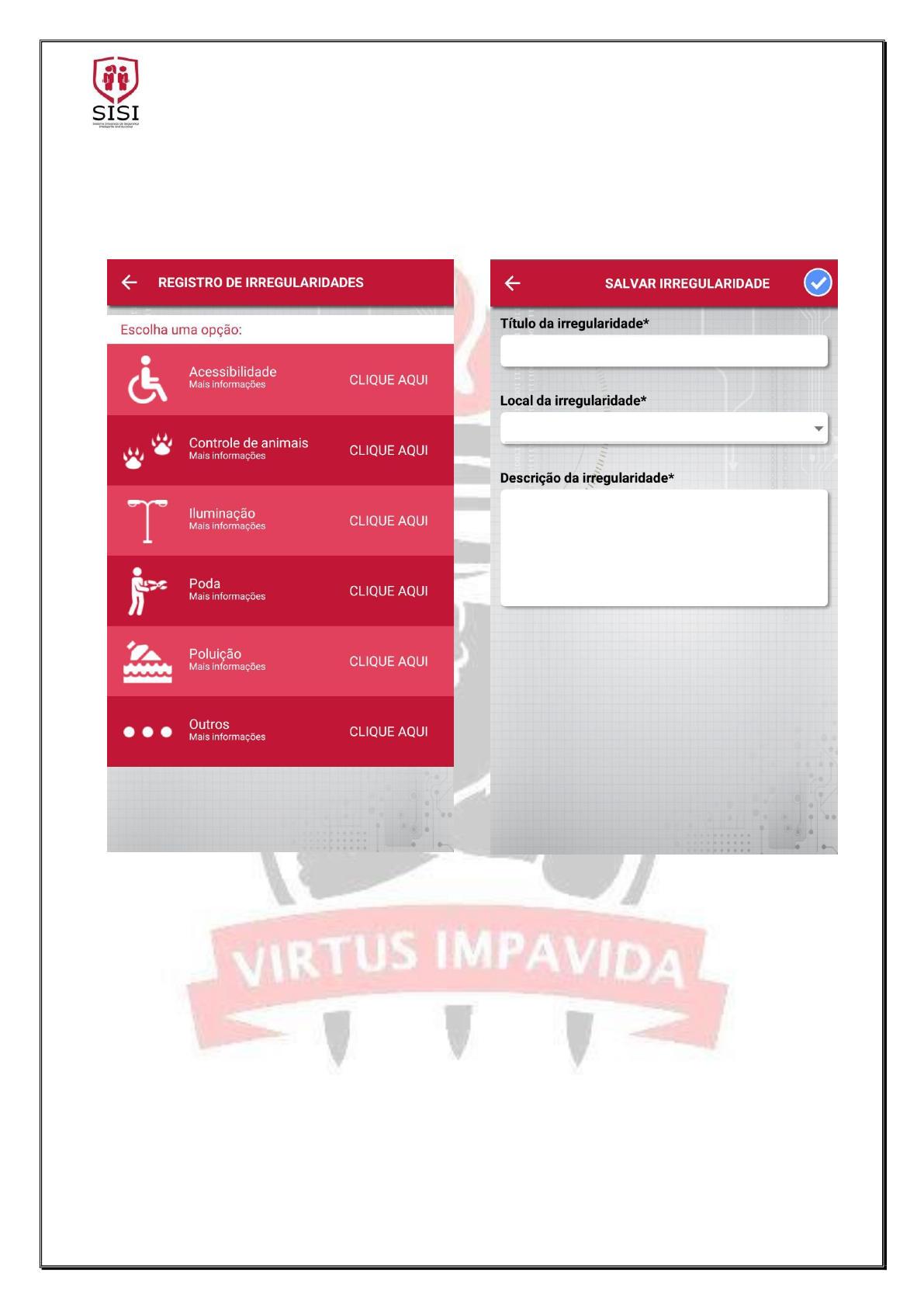 de animais, dentre outros, o usuário precisará selecionar o local e o