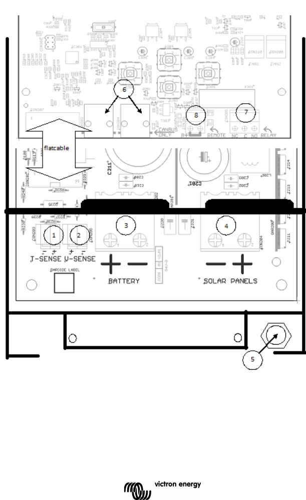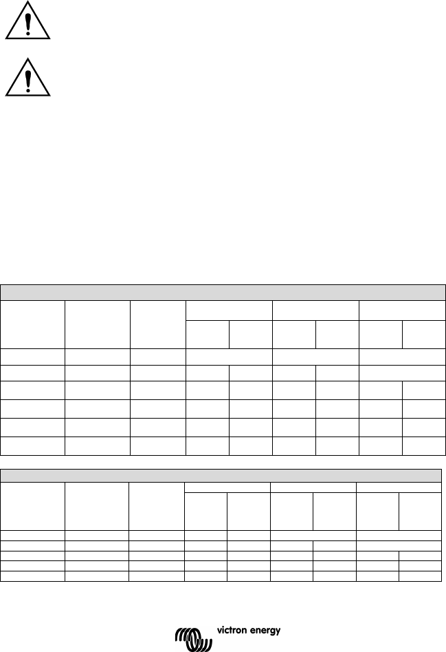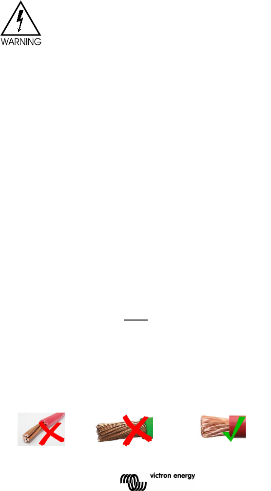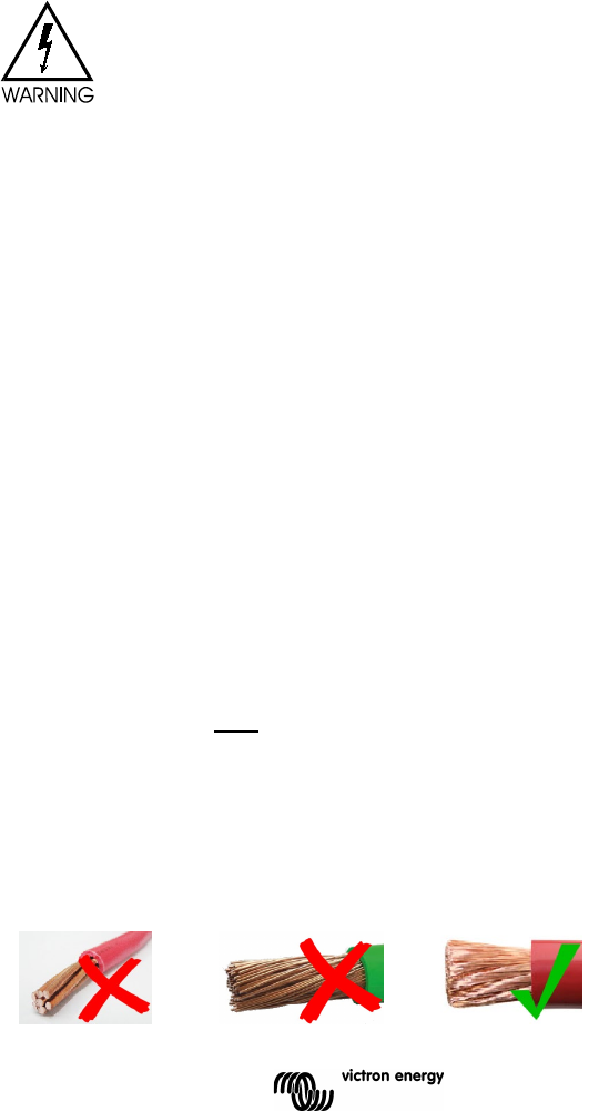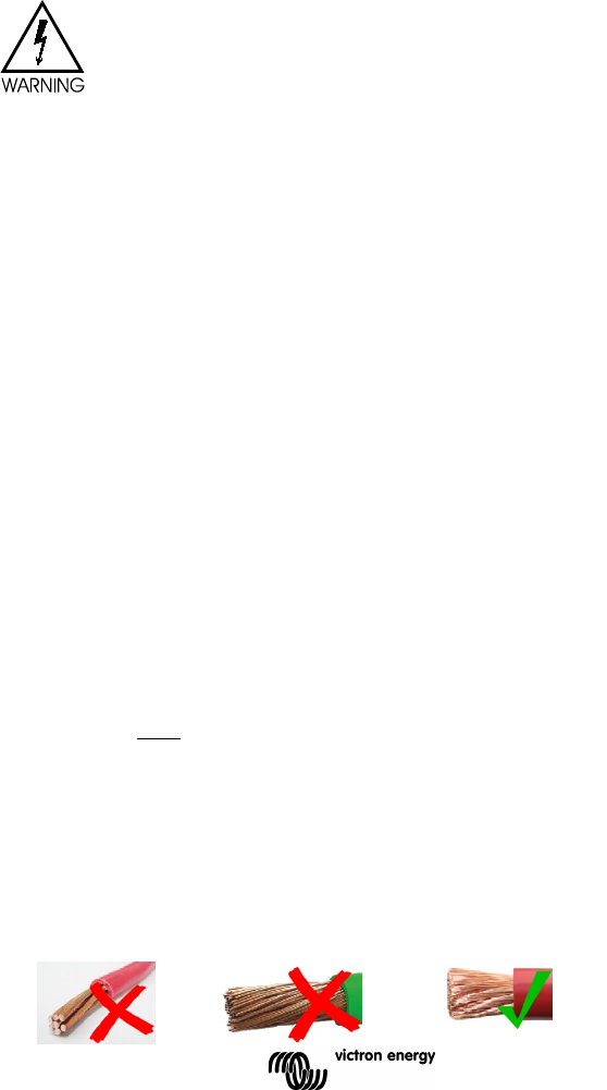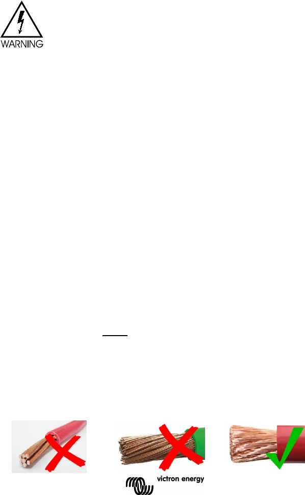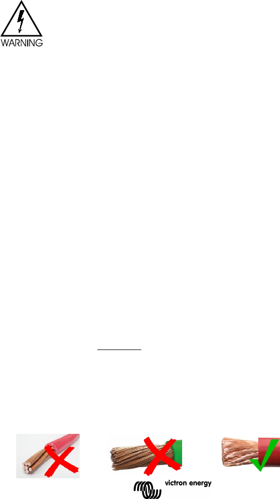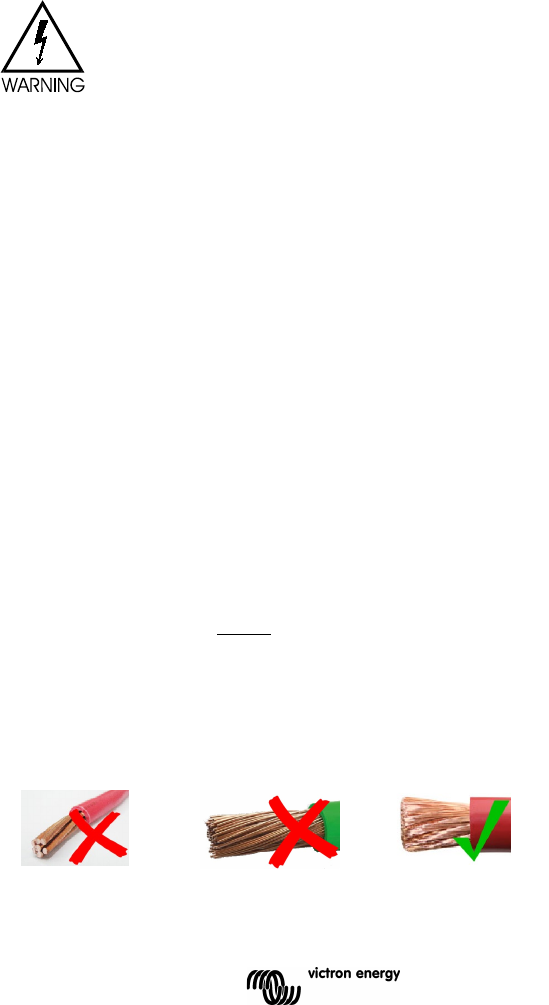 ● Use flexible multistranded copper cable for the battery and PV connections.
