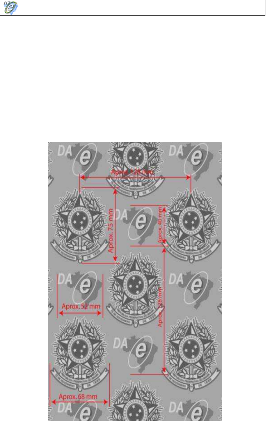 Modelo das dimensões e posicionamento das filigranas no papel de segurança para FS-DA
