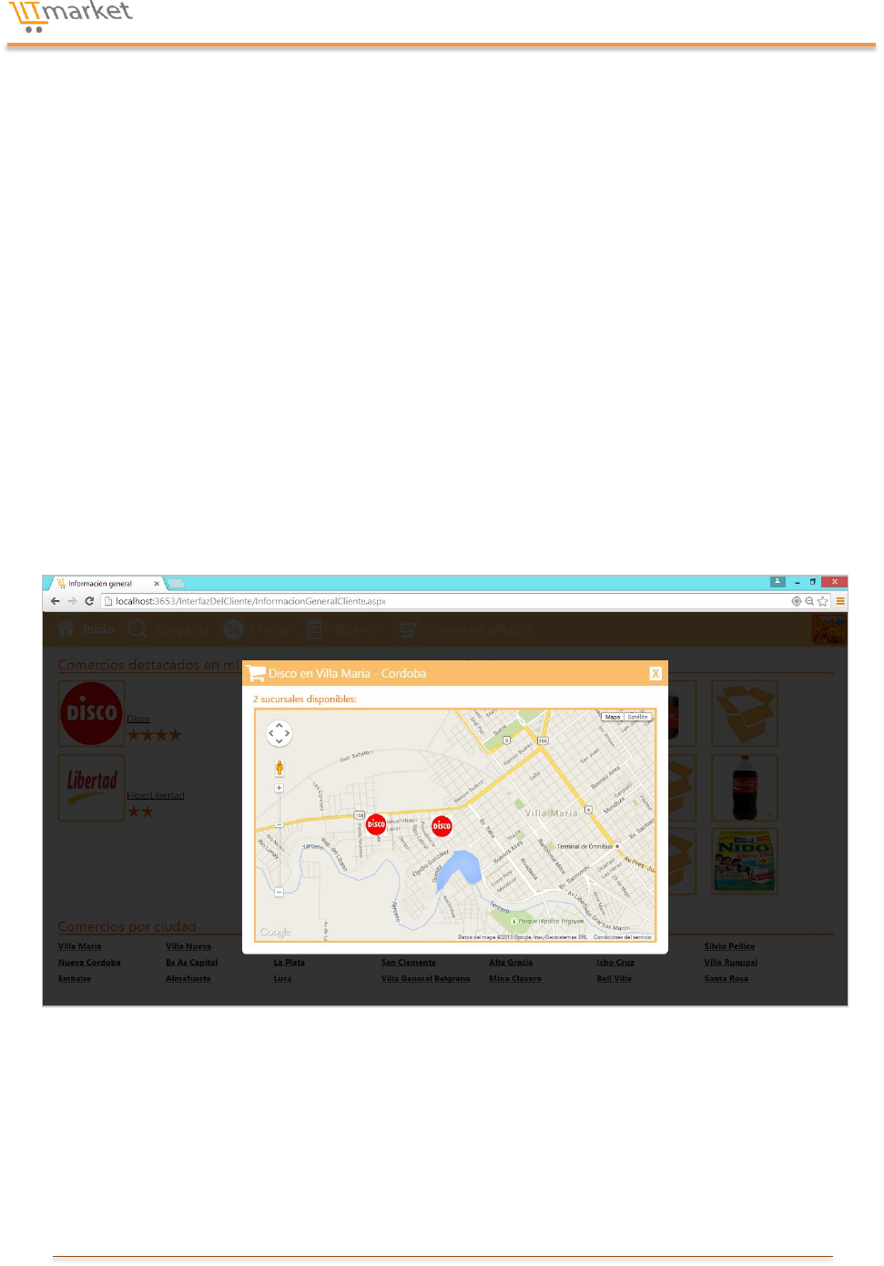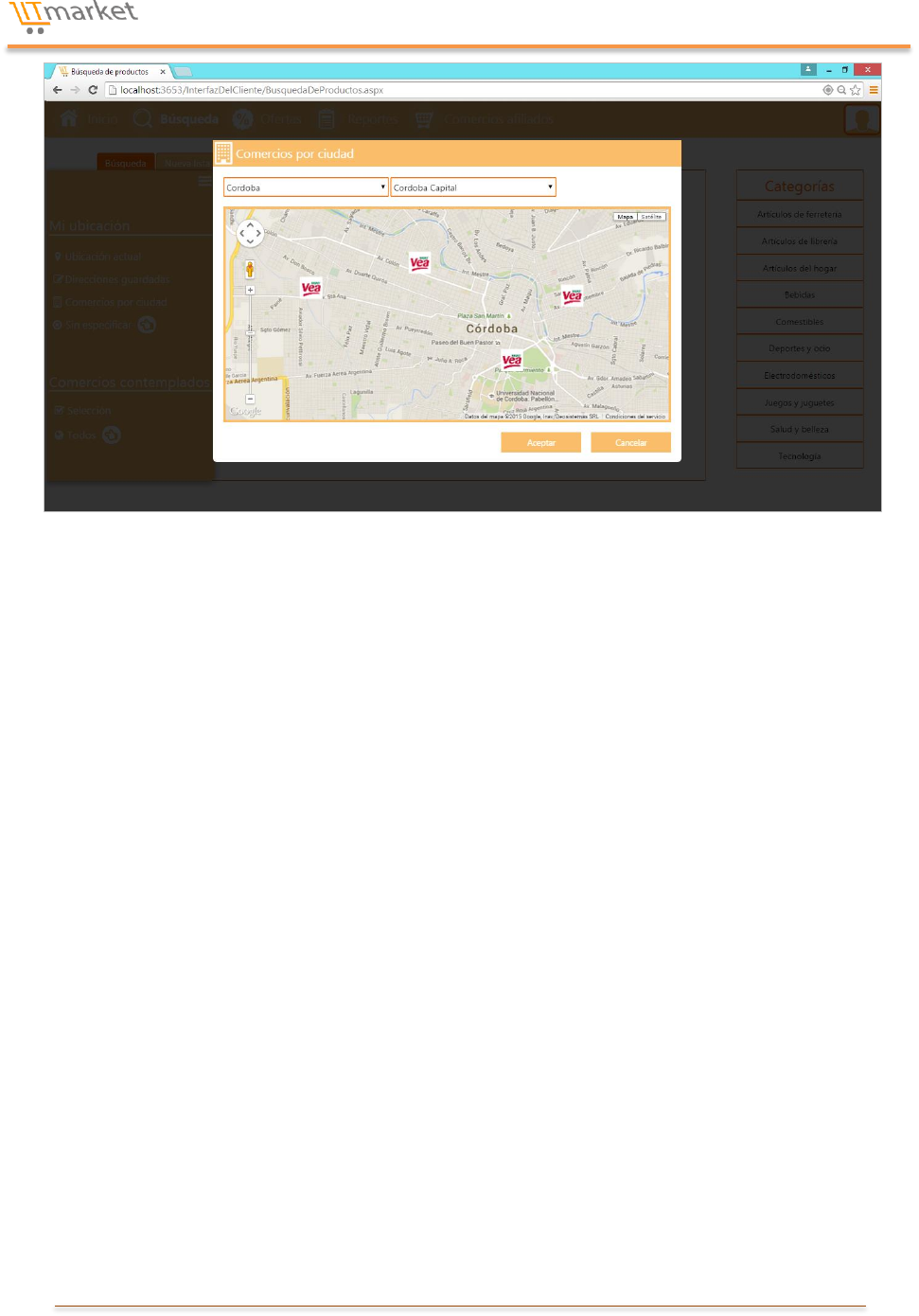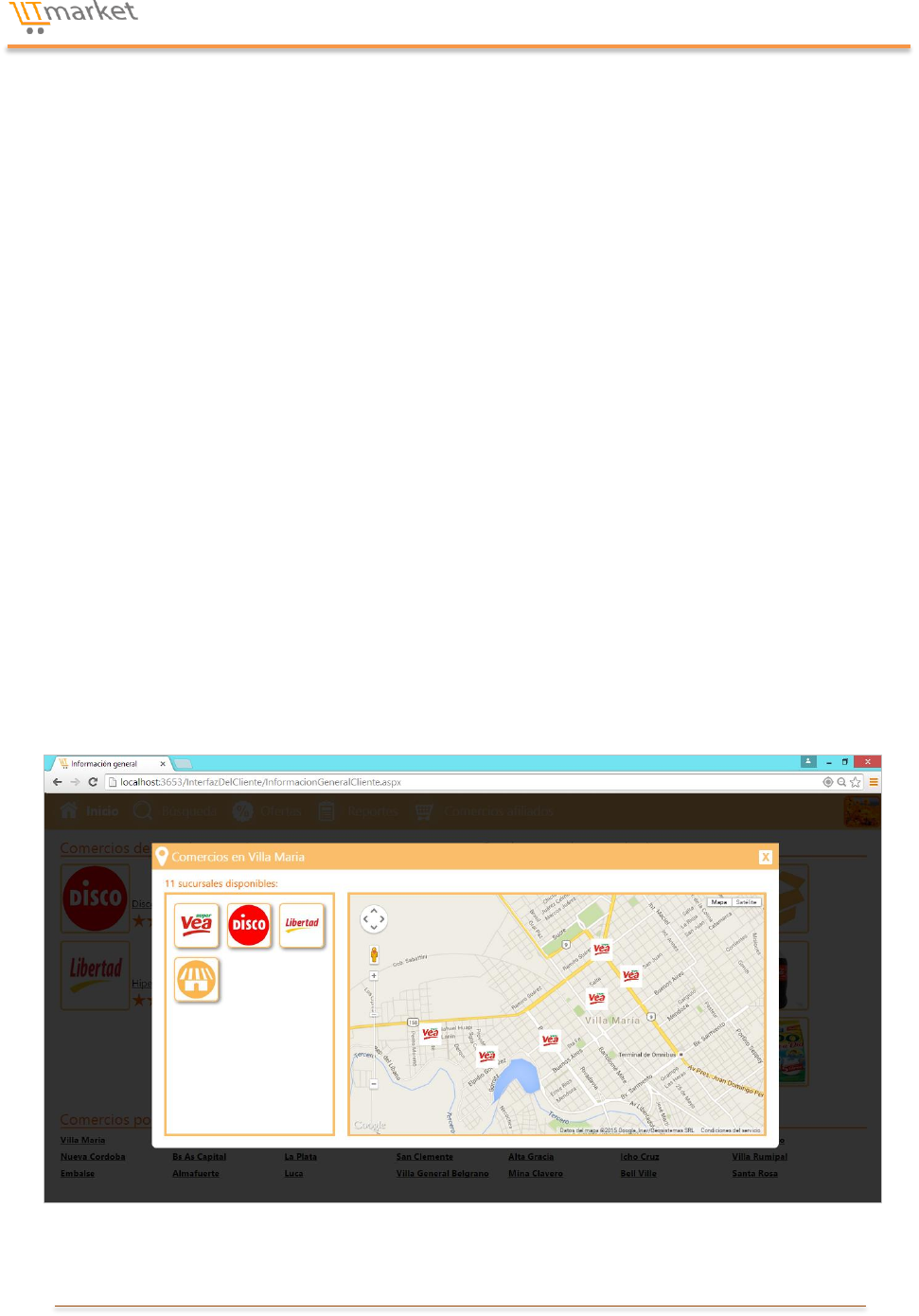seleccionada anteriormente, mostrando sólo aquellos comercios que cuenten