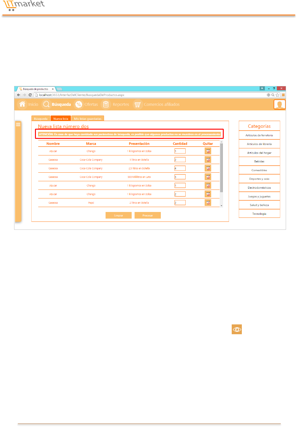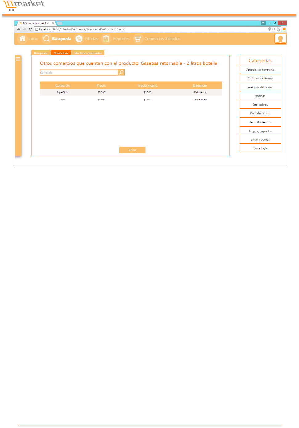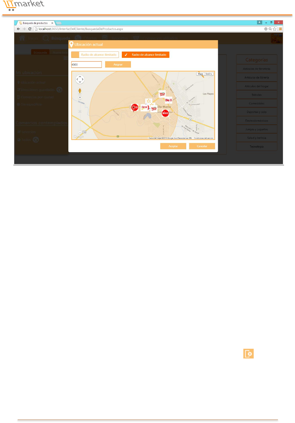 seleccionada anteriormente, mostrando sólo aquellos comercios que cuenten