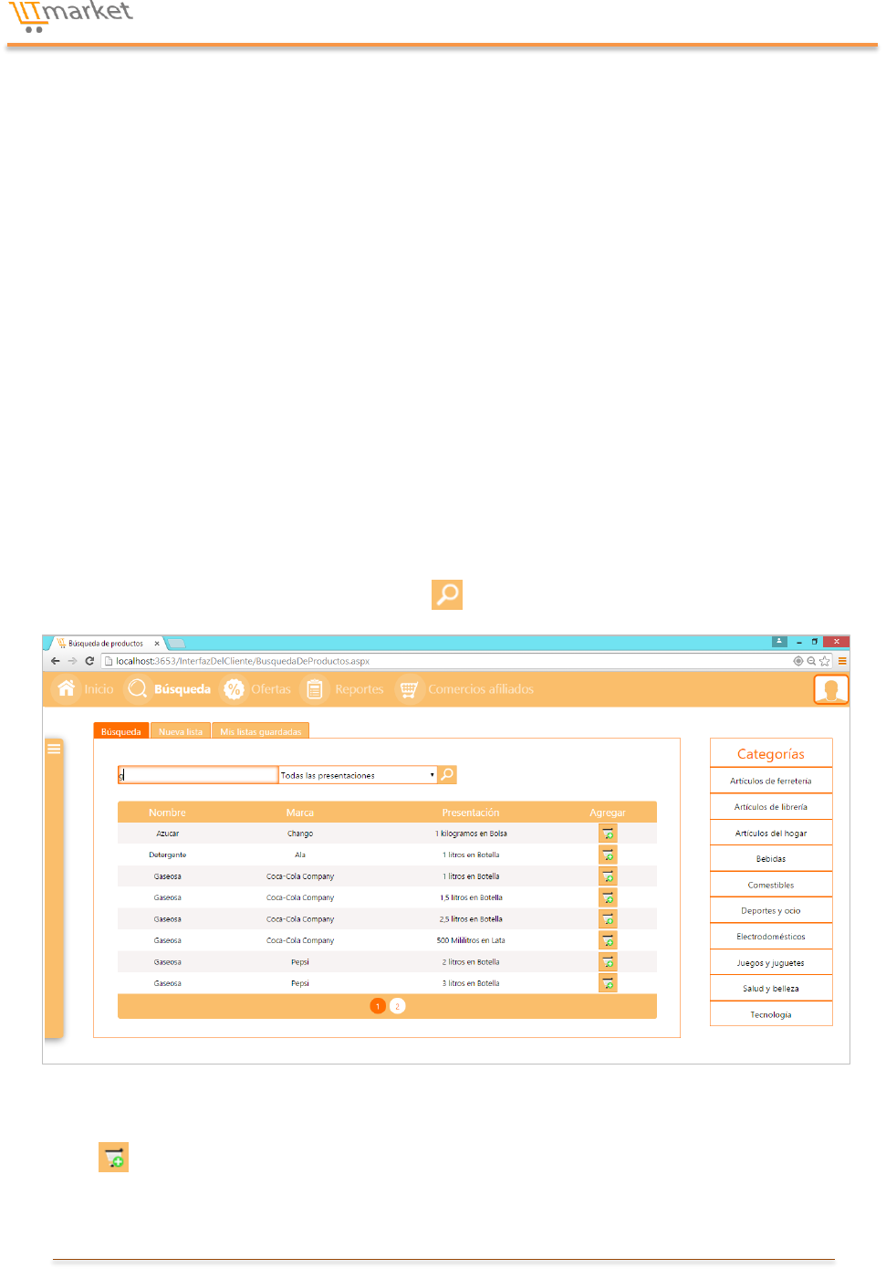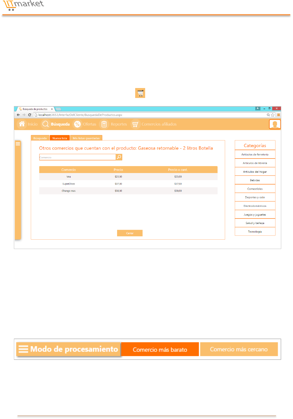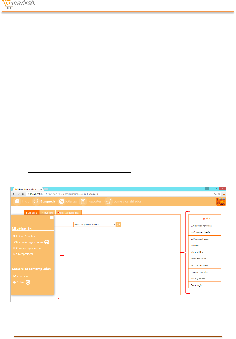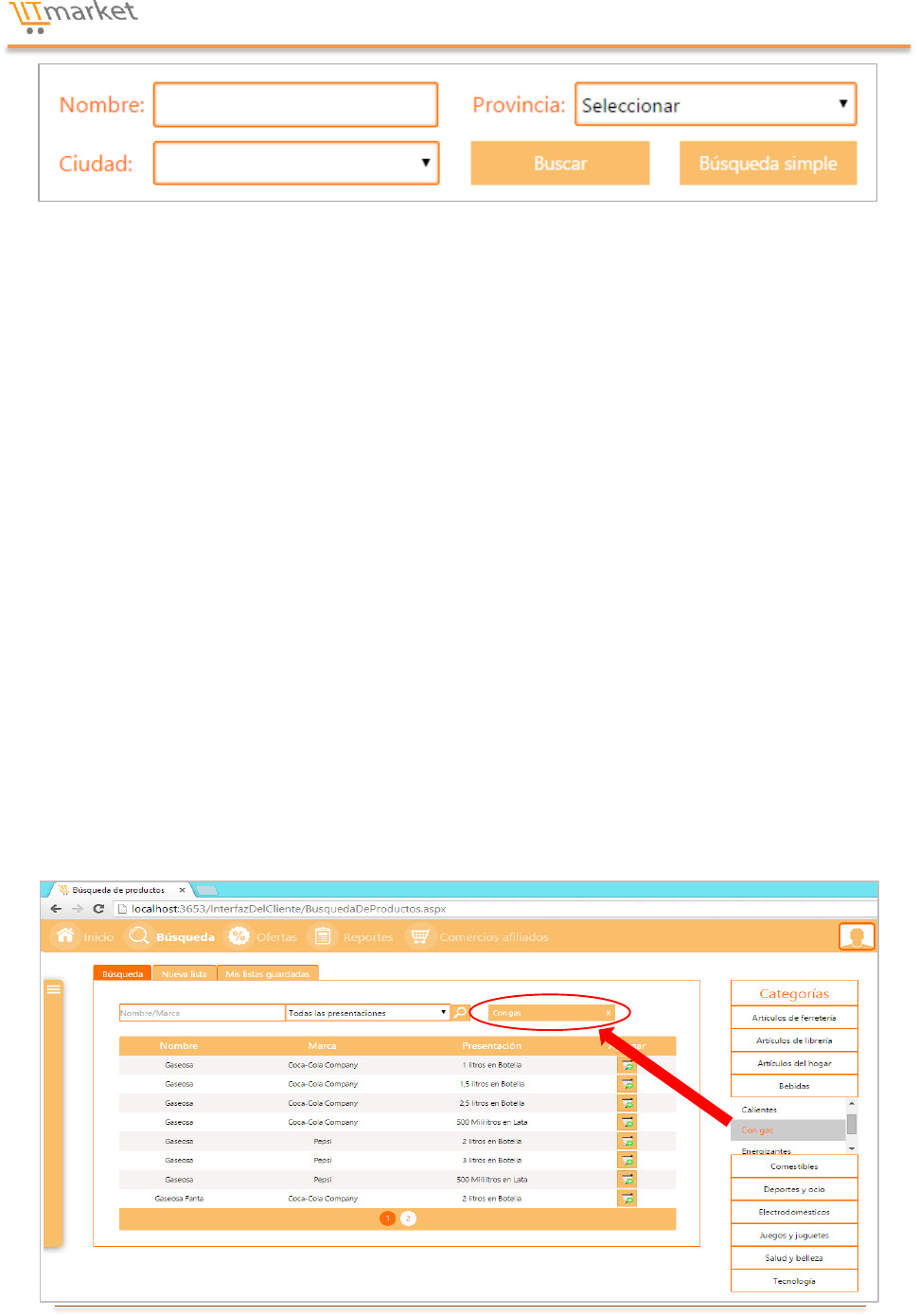 que ofrecen productos pertenecientes a la categoría elegida, activando además,
