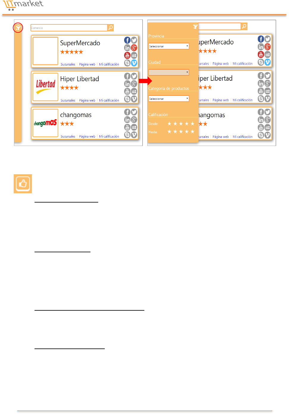 o Filtro de calificación: su objetivo es permitir visualizar a los comercios cuya