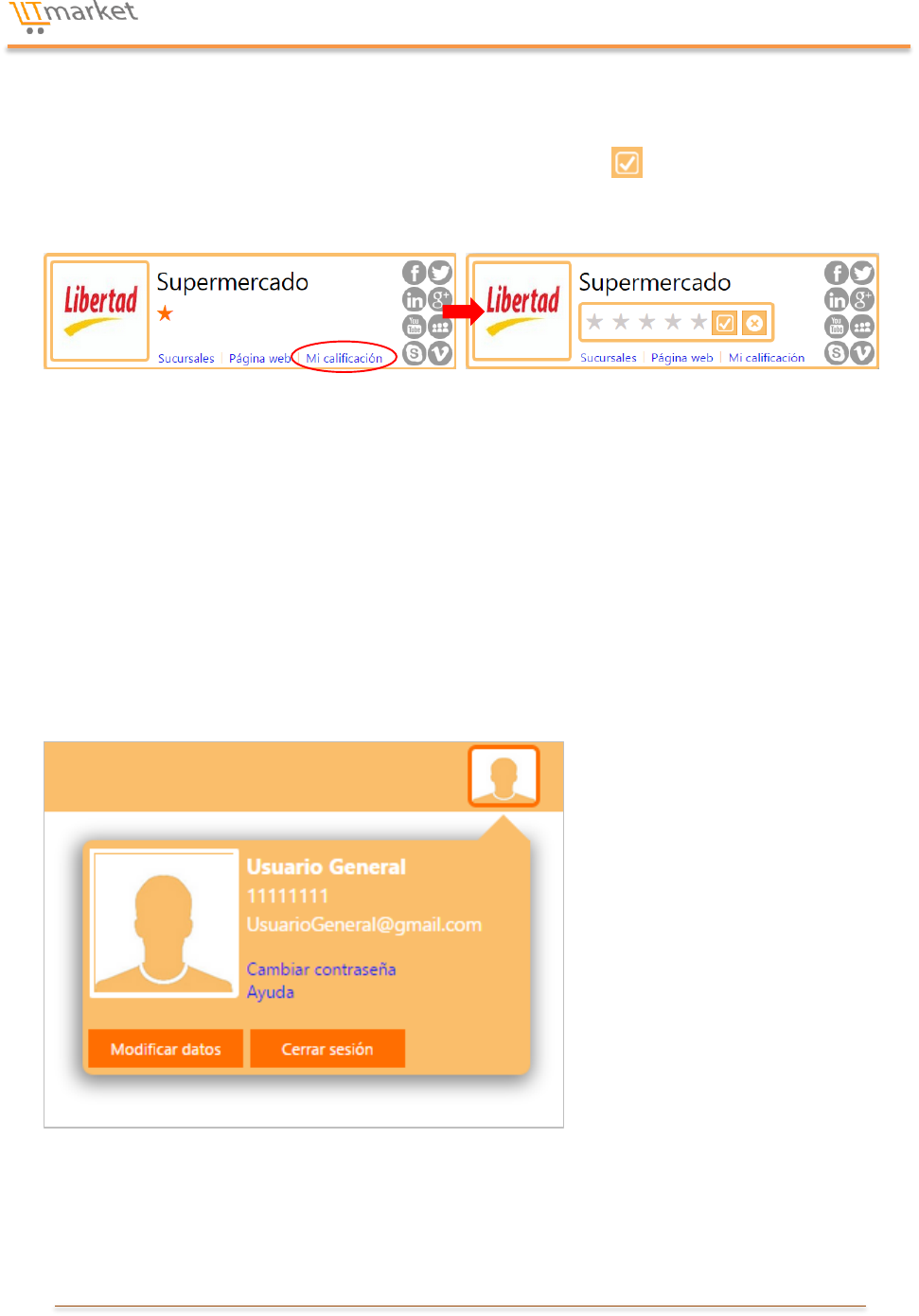 Asimismo, será capaz de asignarle su propia calificación a cada comercio para que