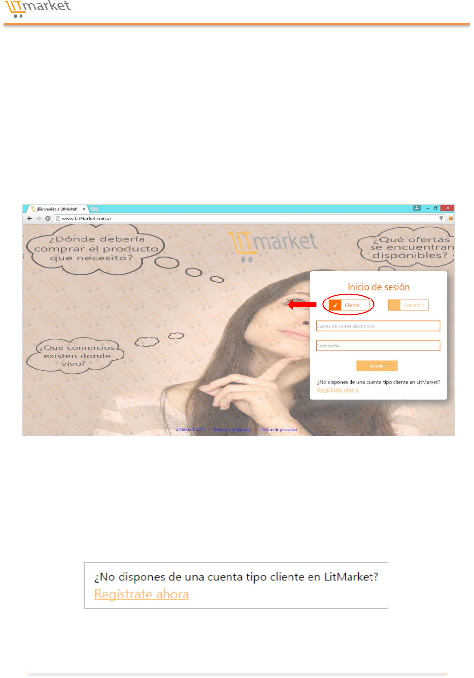 En caso de no disponer de una cuenta tipo Cliente en LitMarket, podrá acceder a la