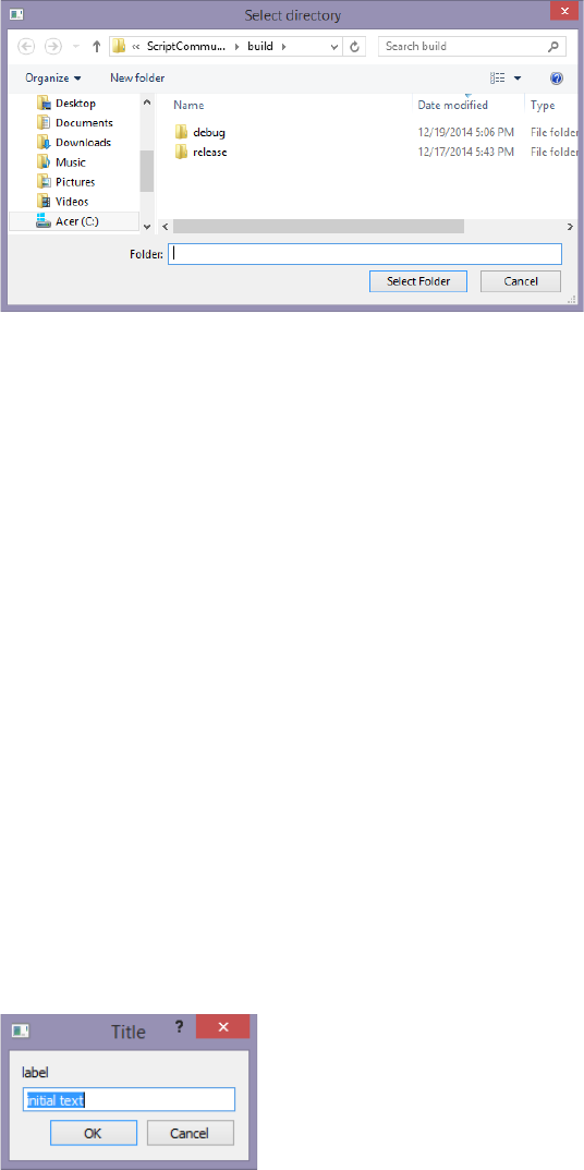 - String showTextInputDialog(String title, String label, String displayedText="", QWidget* parent=0)