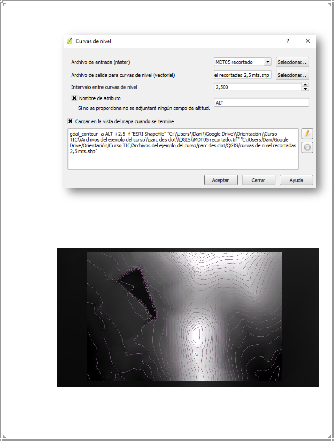 o Composición de la fotografía y extracción de curvas de nivel con Quantum GIS