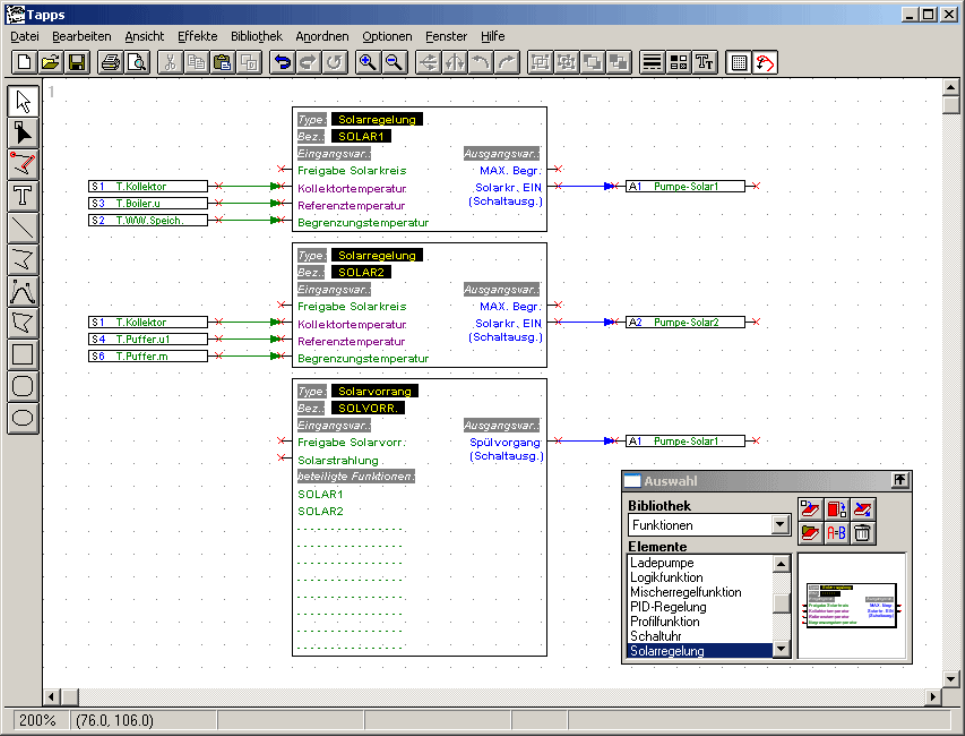 am PC als grafischen Ablaufplan zeichnen (= programmieren) und parametrieren. Zum Einspielen der