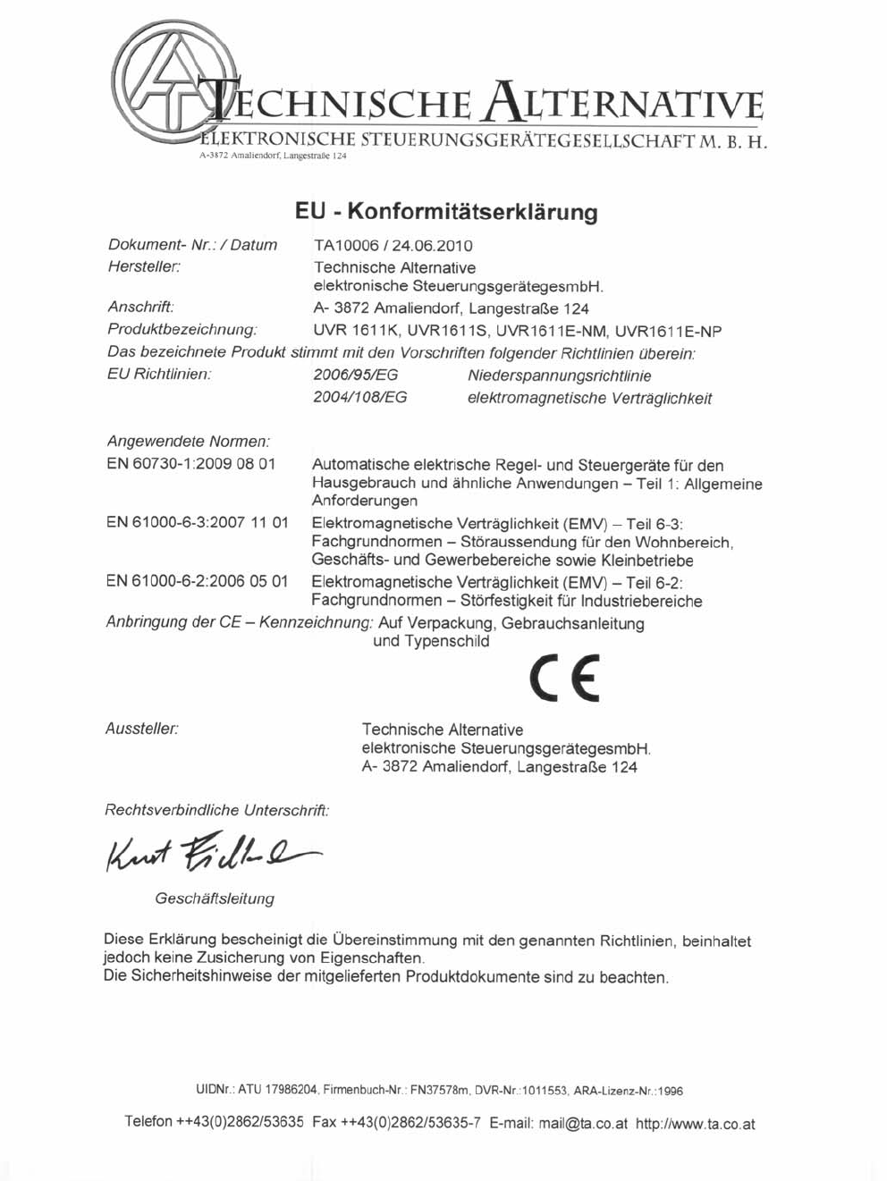 trächtigen. Falls eine Reparatur nach Beurteilung durch die Technische Alternative aus Kostengründen