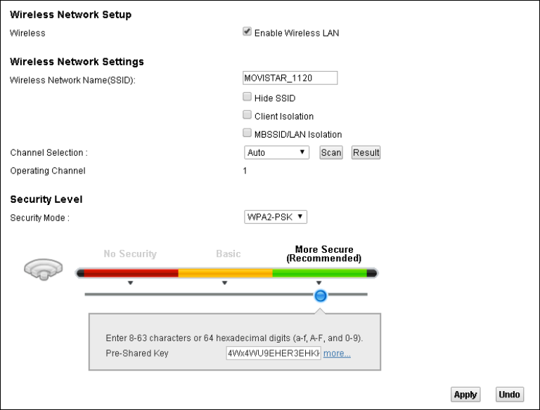 •WPA2-PSK: (recommended) This uses a pre-shared key with the WPA2 standard.