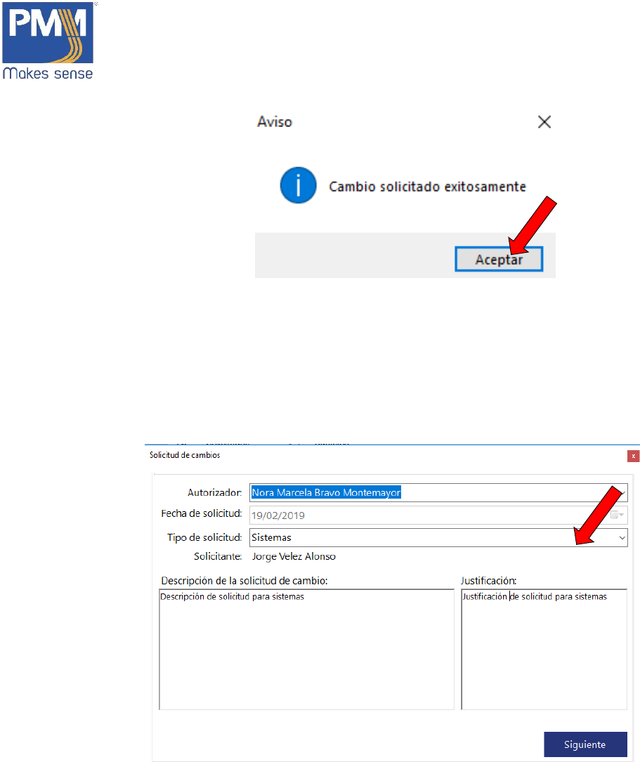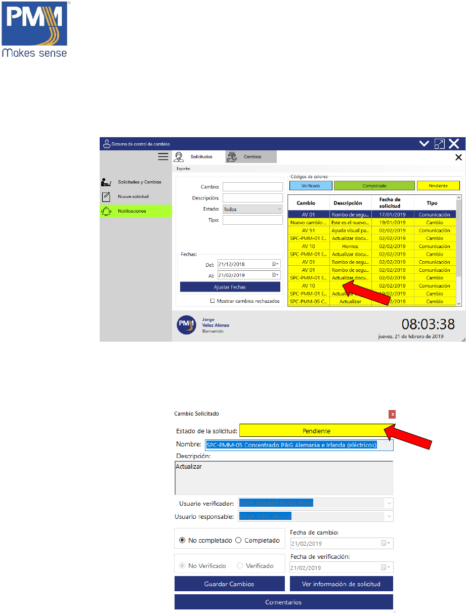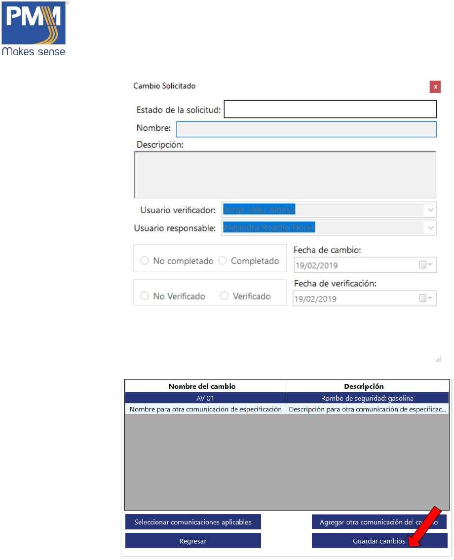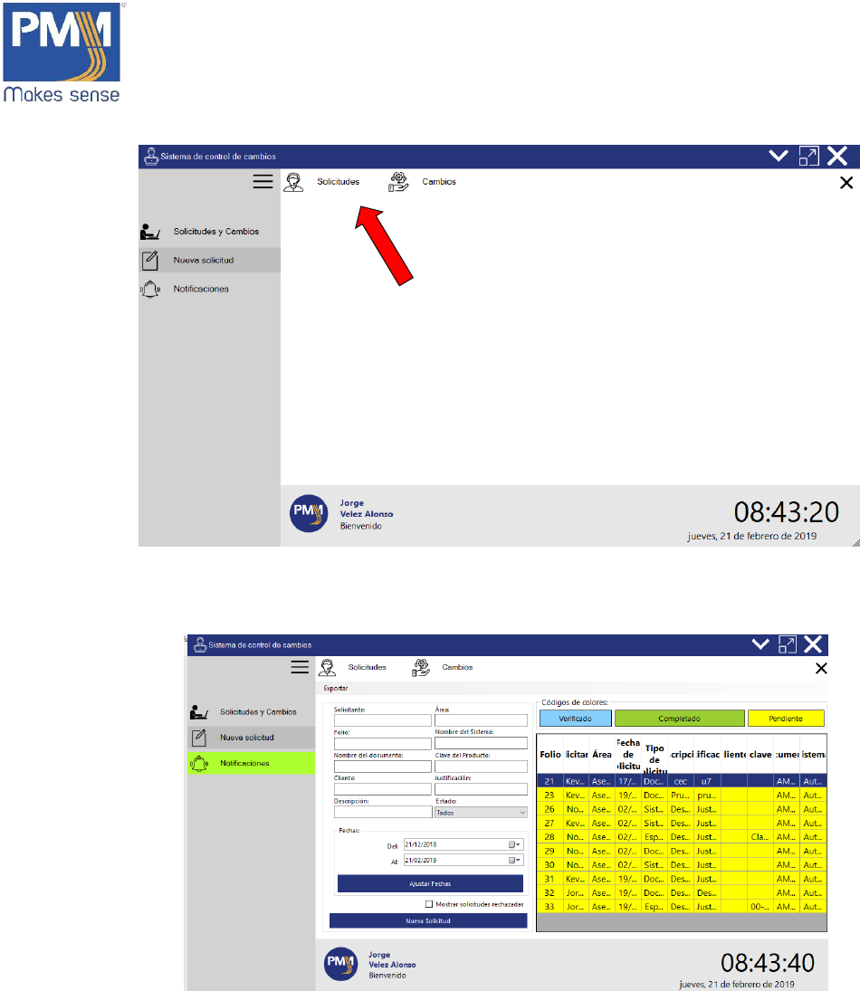 1. En la ventana de “Solicitudes y Cambios”, dar click sobre el botón “Cambios”.