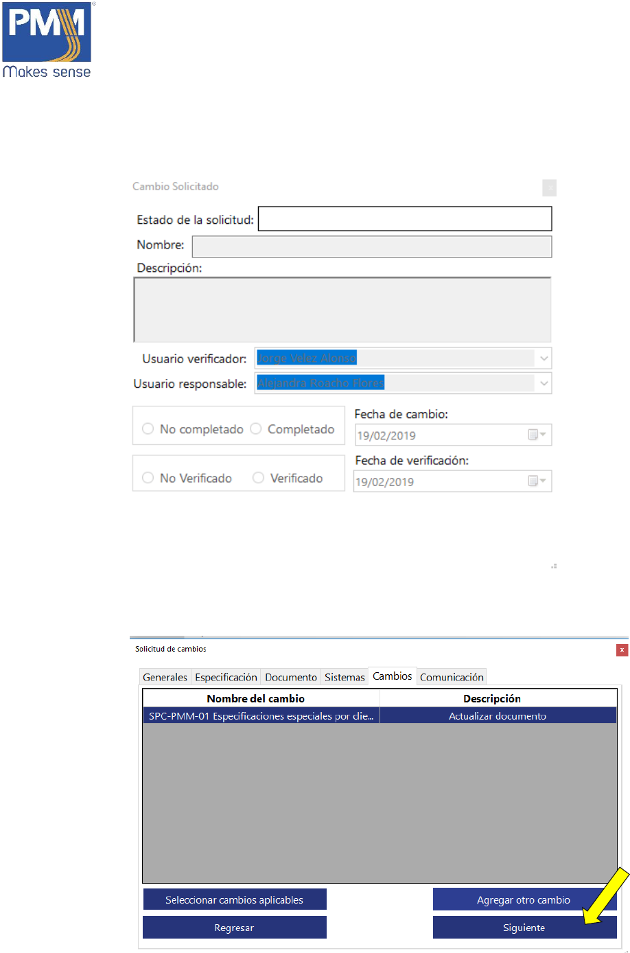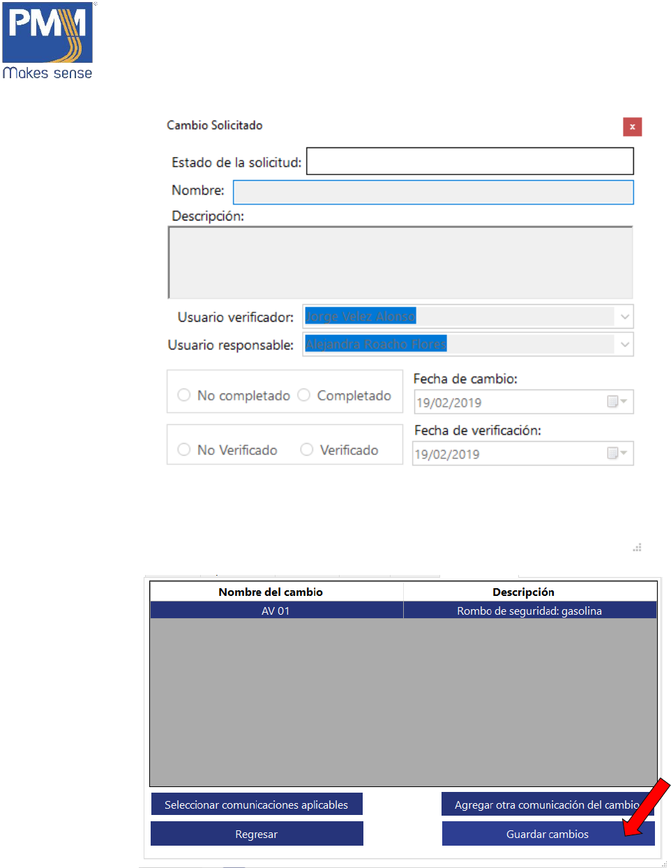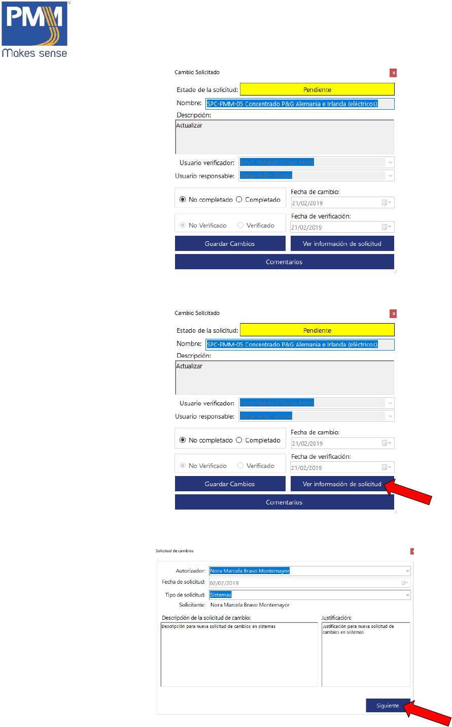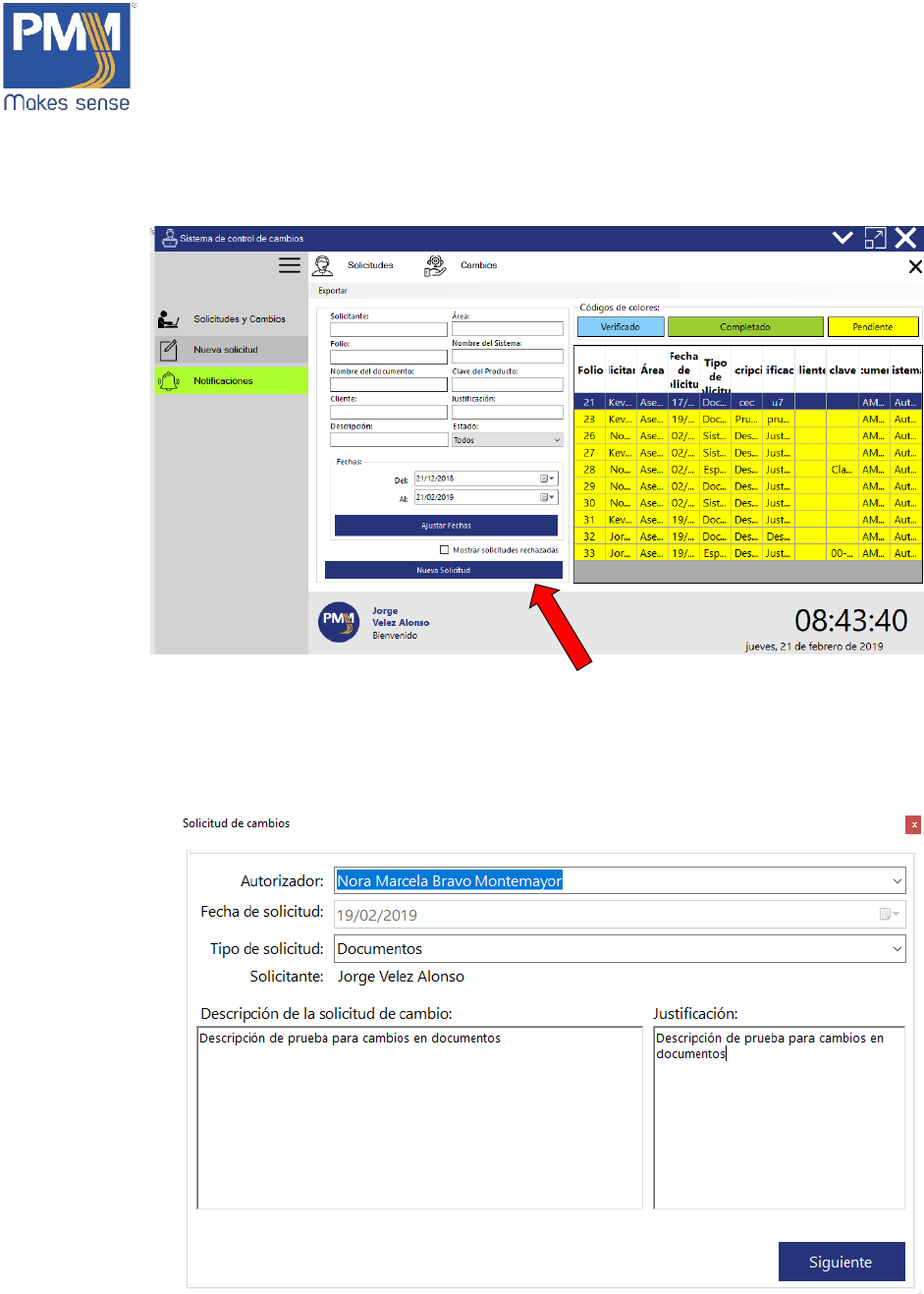 1. En la ventana de “Solicitudes y Cambios”, dar click sobre el botón “Cambios”.