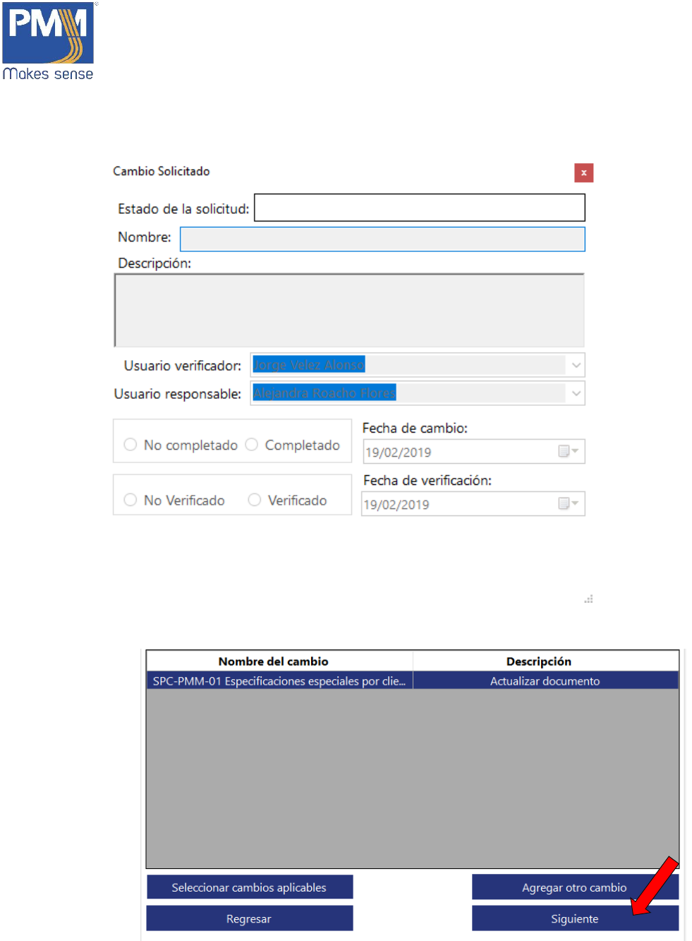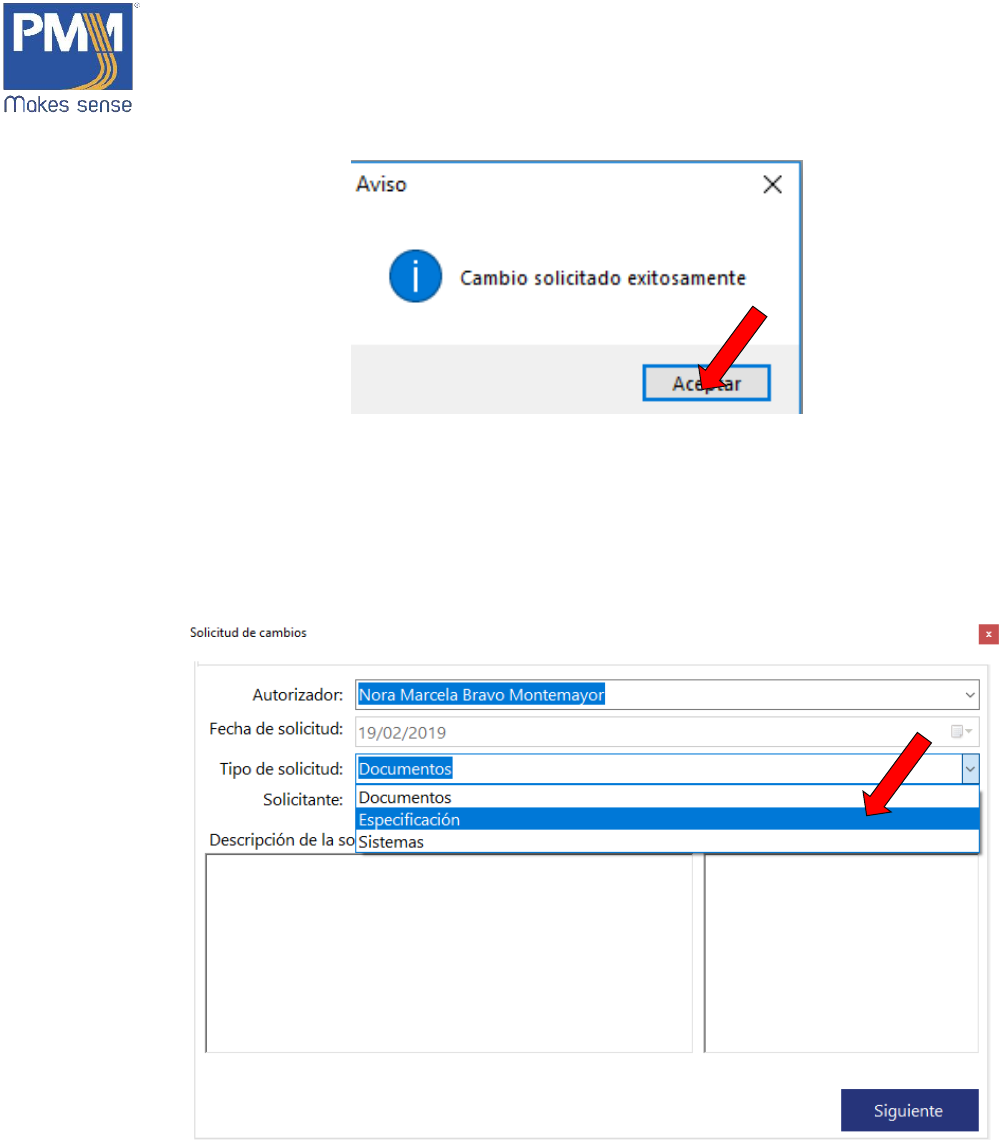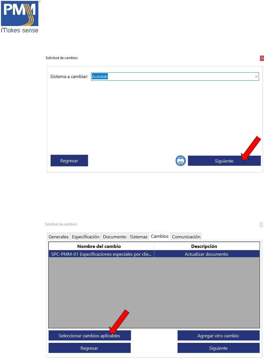 5. Se abrirá una nueva ventana con los cambios aplicables. Seleccionar el requerido.