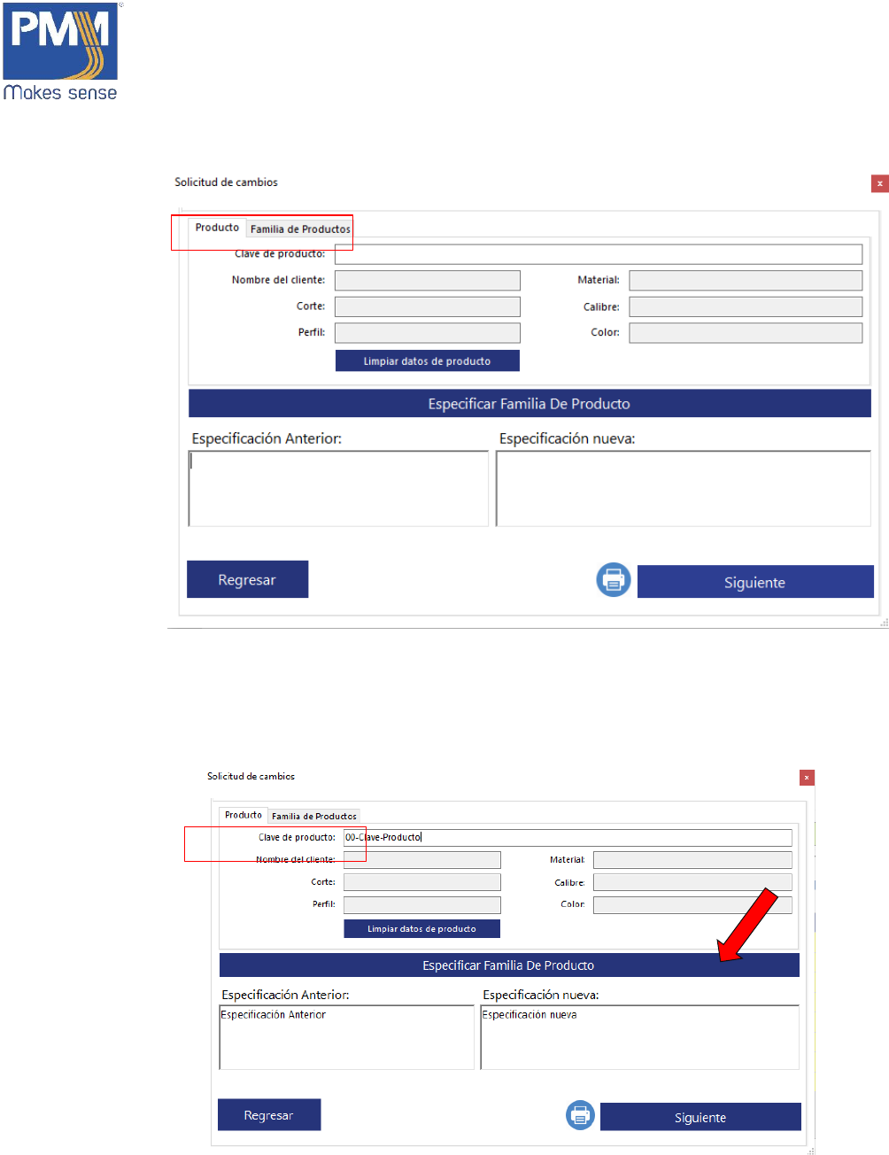 3. Dar click en el botón “Especificar familia de producto”. Ira a la segunda su pestaña