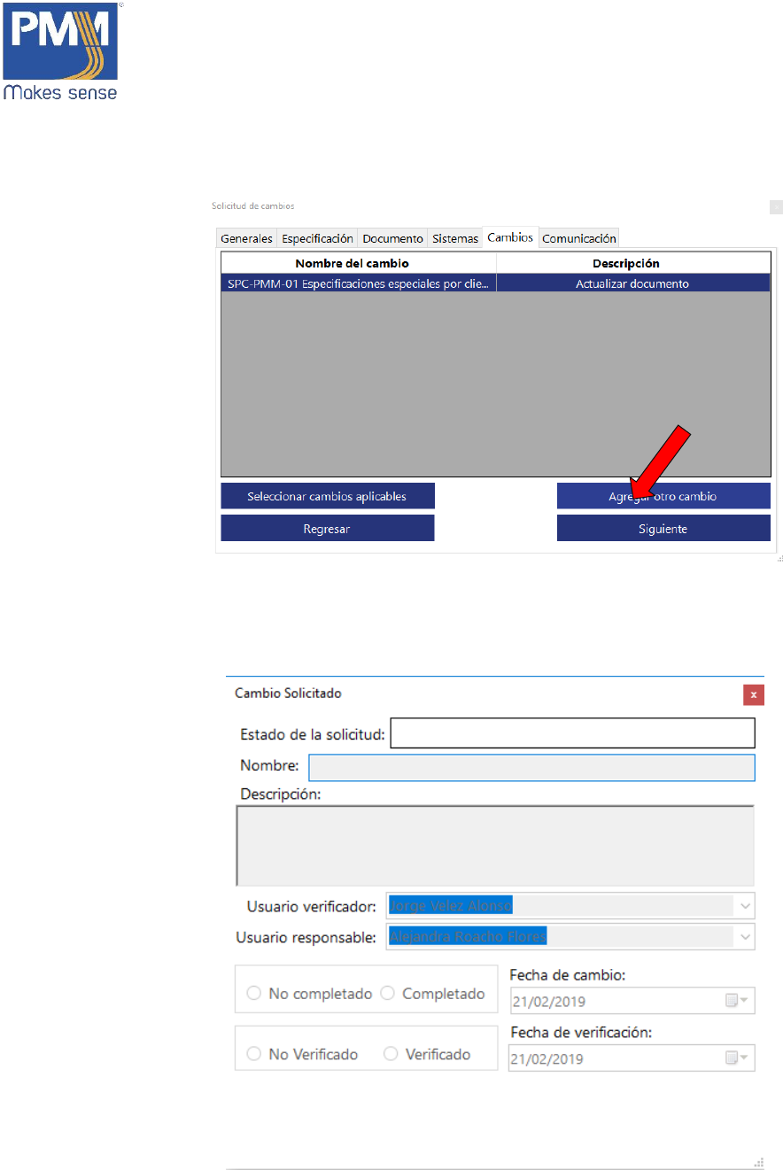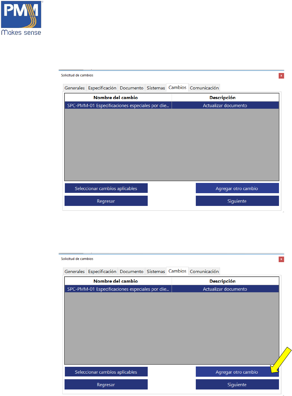 de cambio. Dar click en el botón “Agregar otro cambio”.