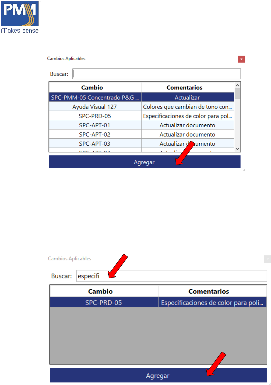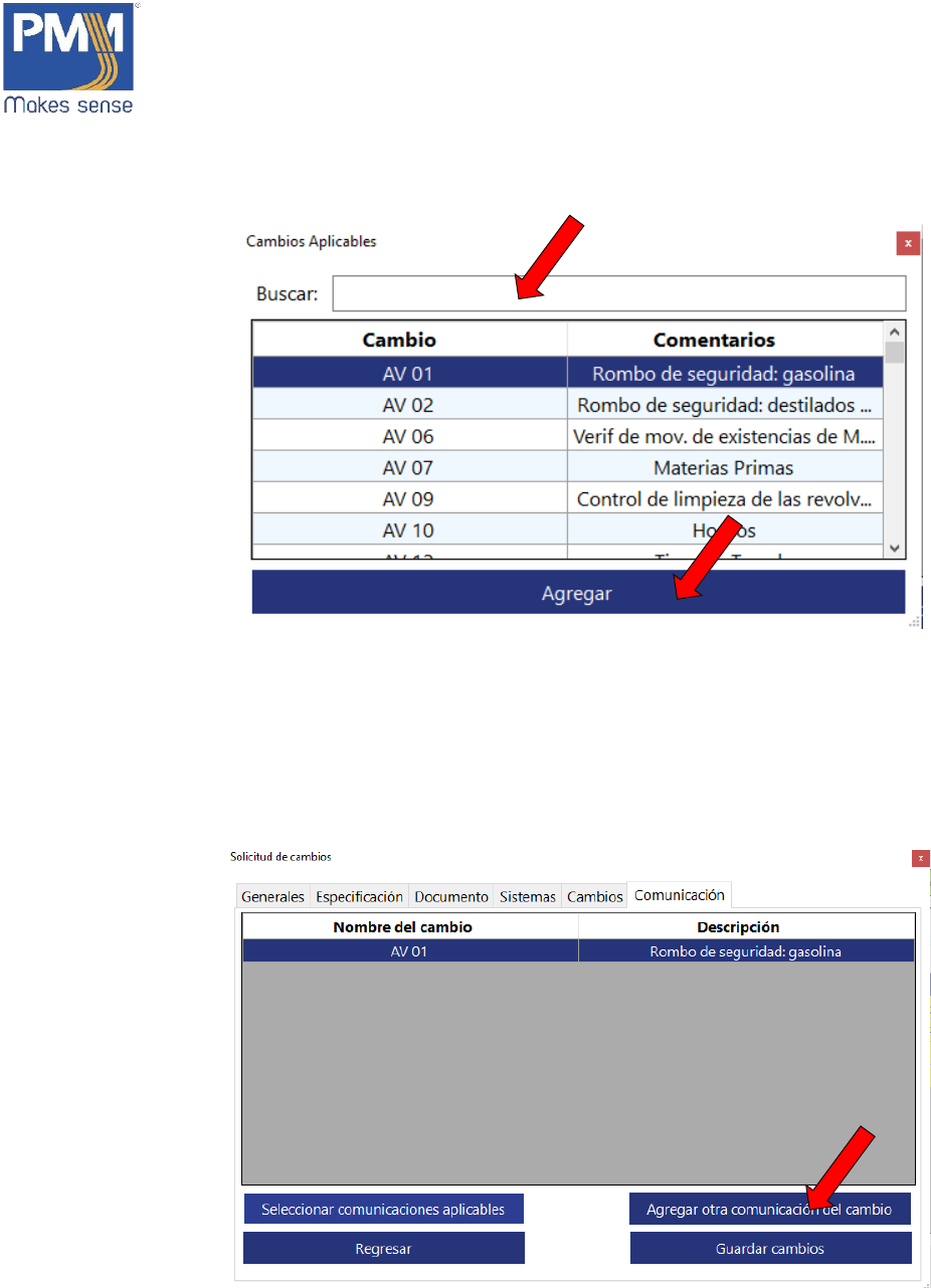 14. Para la búsqueda de comunicaciones para el cambio, escribir en la caja de texto.