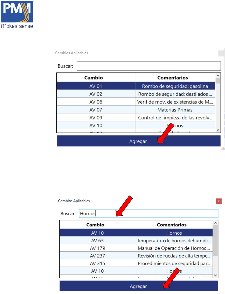 7. Para búsqueda de cambios aplicables, escribir en la caja de texto, localizada en la