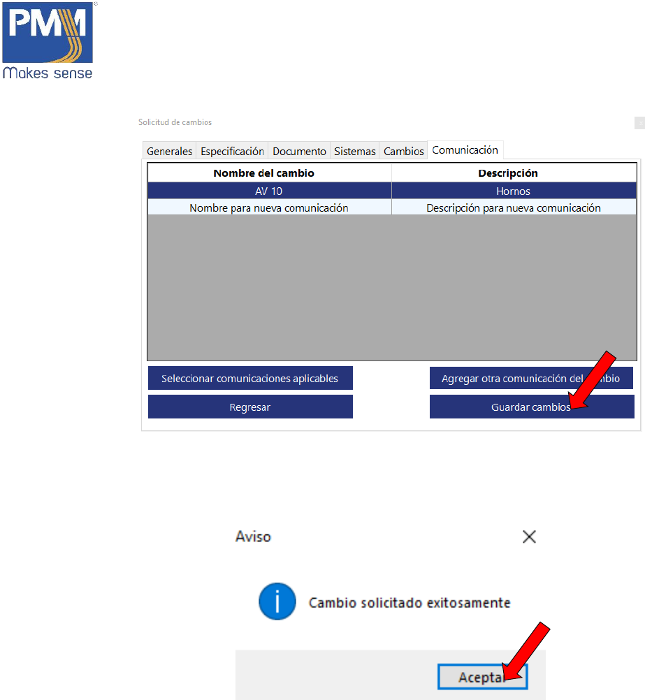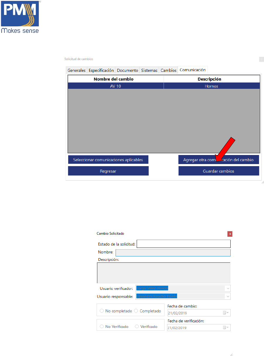 tipo de comunicación, dar click en el botón “Agregar otra comunicación del cambio”.