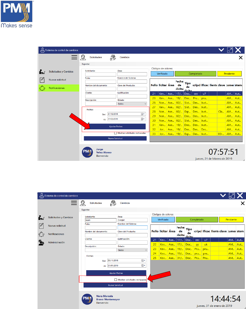 1. En la ventana de Solicitudes hay diferentes filtros de búsqueda. Escribir en las cajas