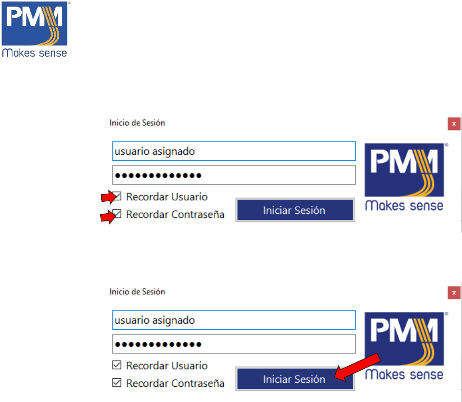 4. Puede dar click en “Recordar usuario” y/o “Recordad Contraseña” para guardar el