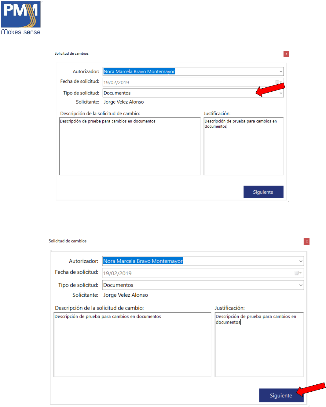 “Solicitudes y Cambios”.