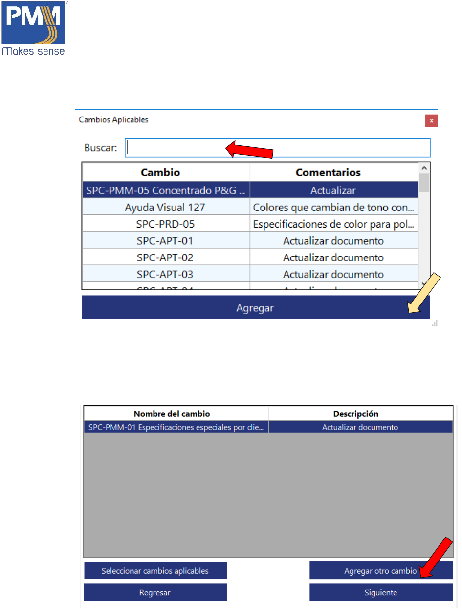 cambio, dar click en el botón “Agregar otro cambio”.