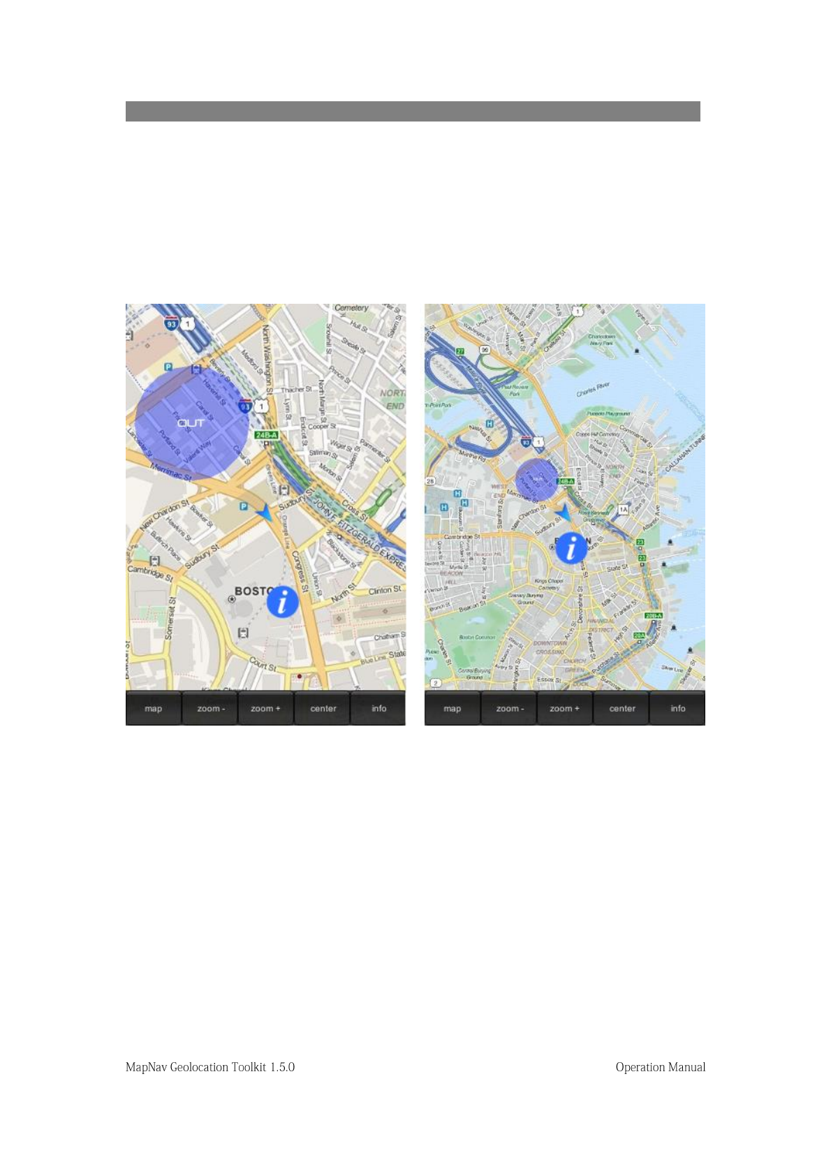 larger area of central Boston. However, notice how the user pointer and the information icon